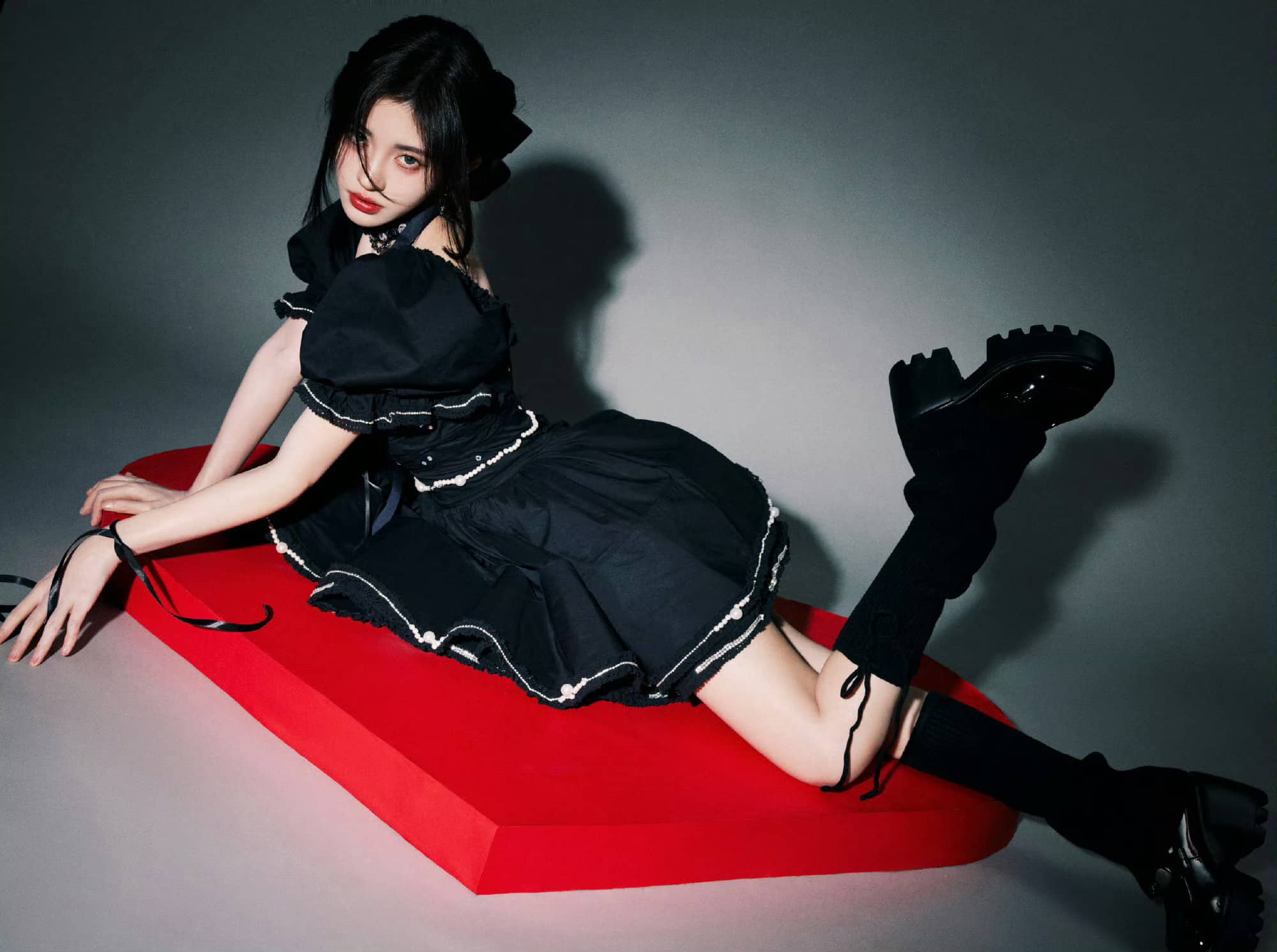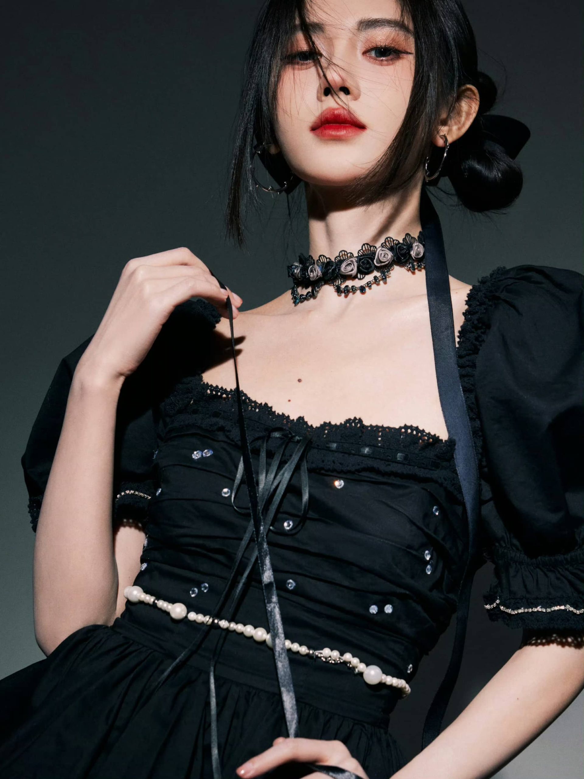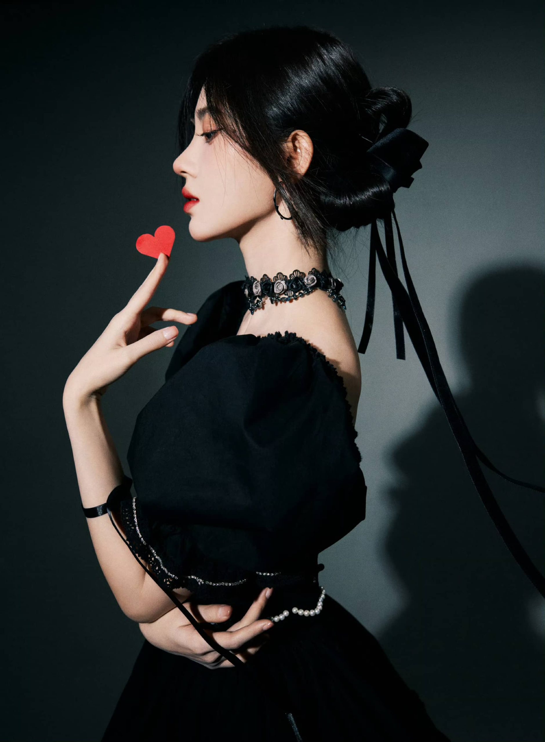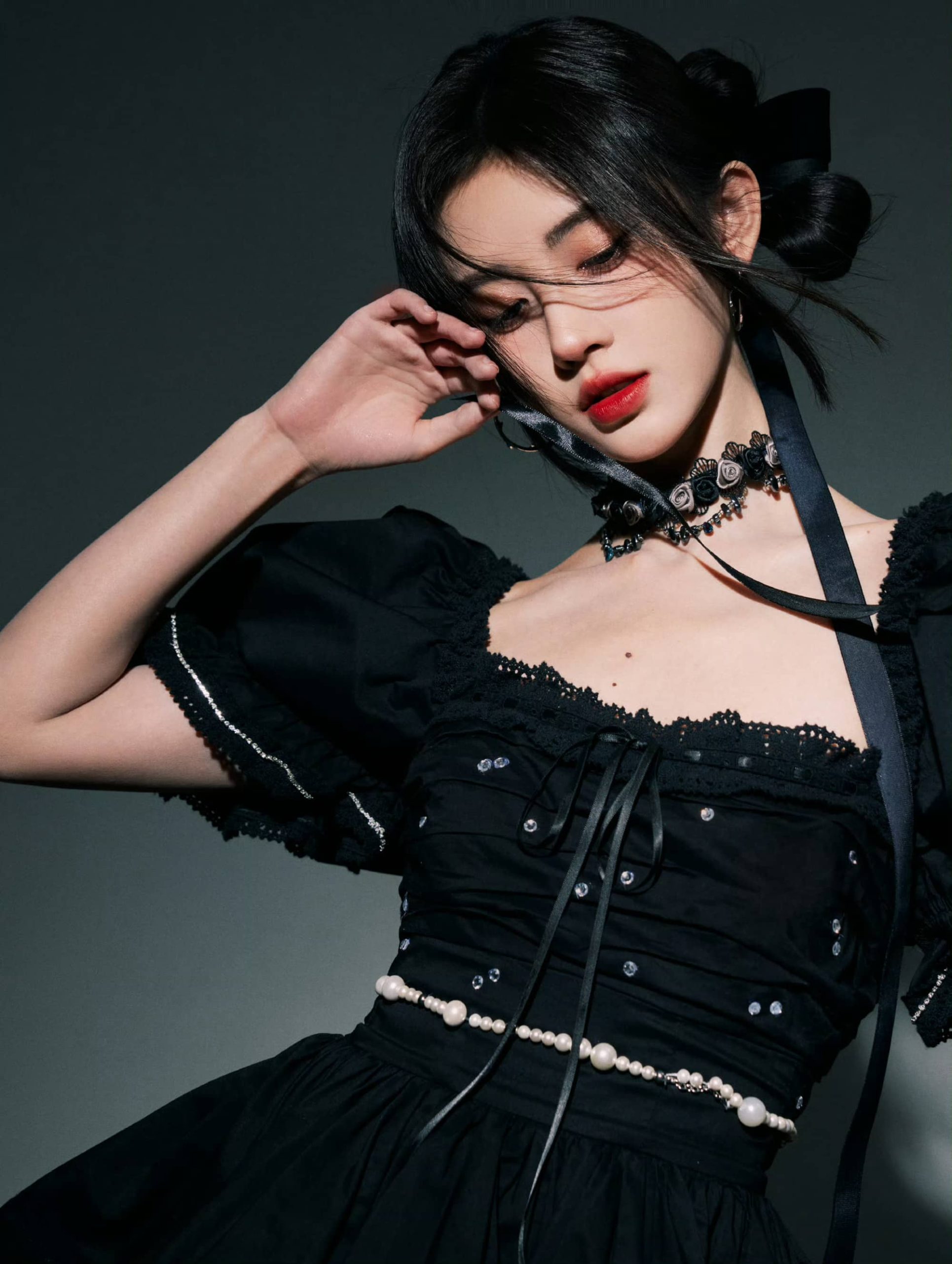 鞠婧祎暗黑风格大片:红唇黑裙,清冷柔美