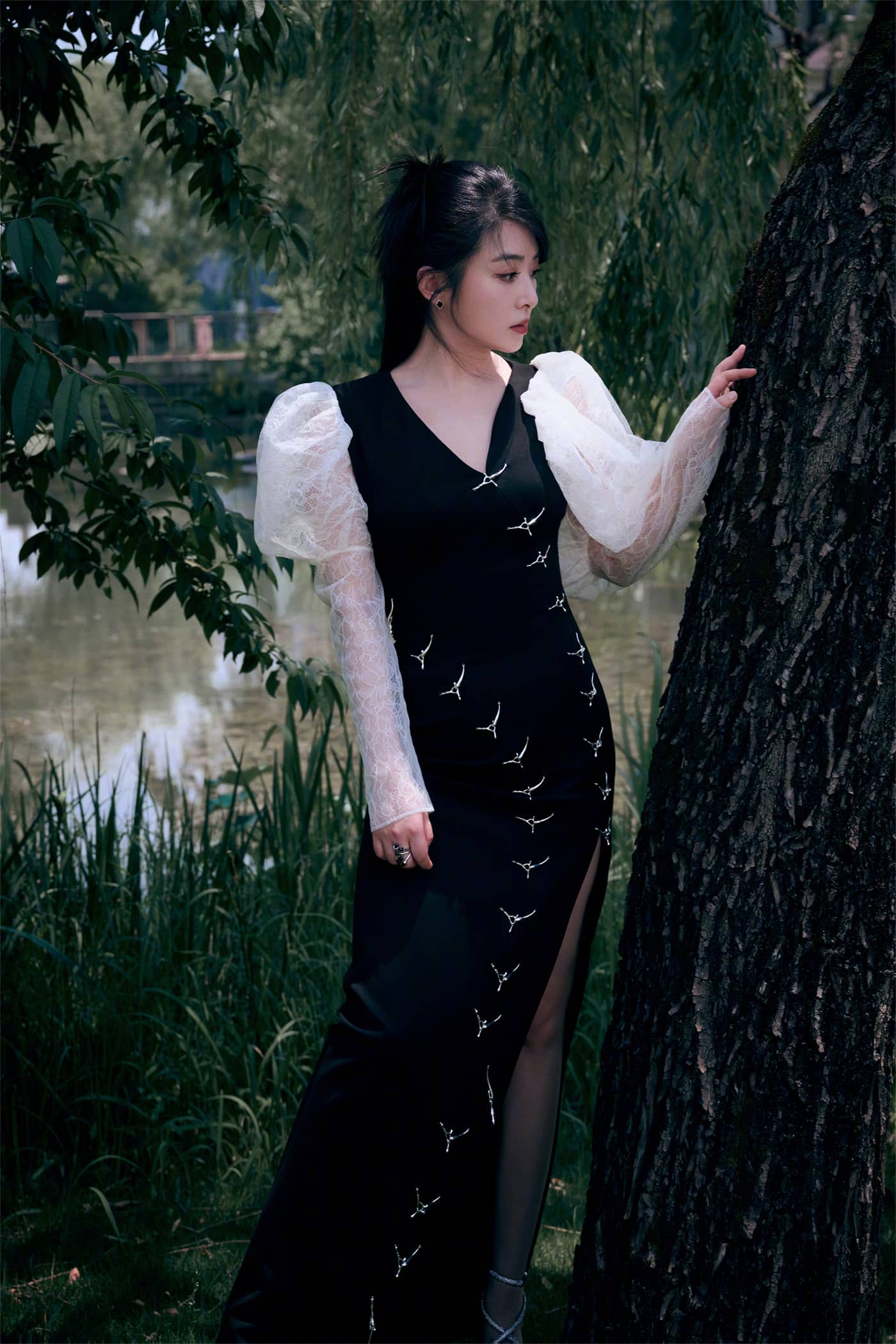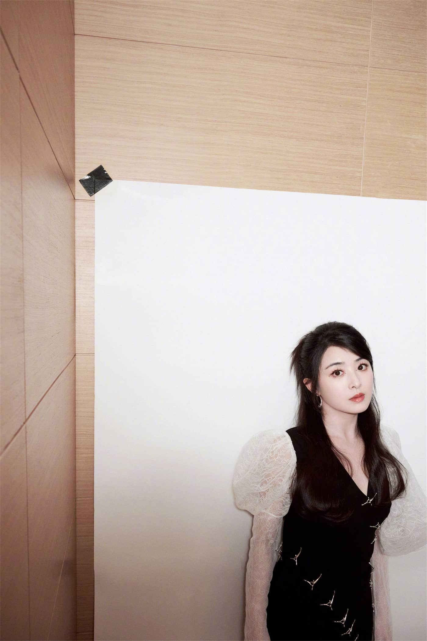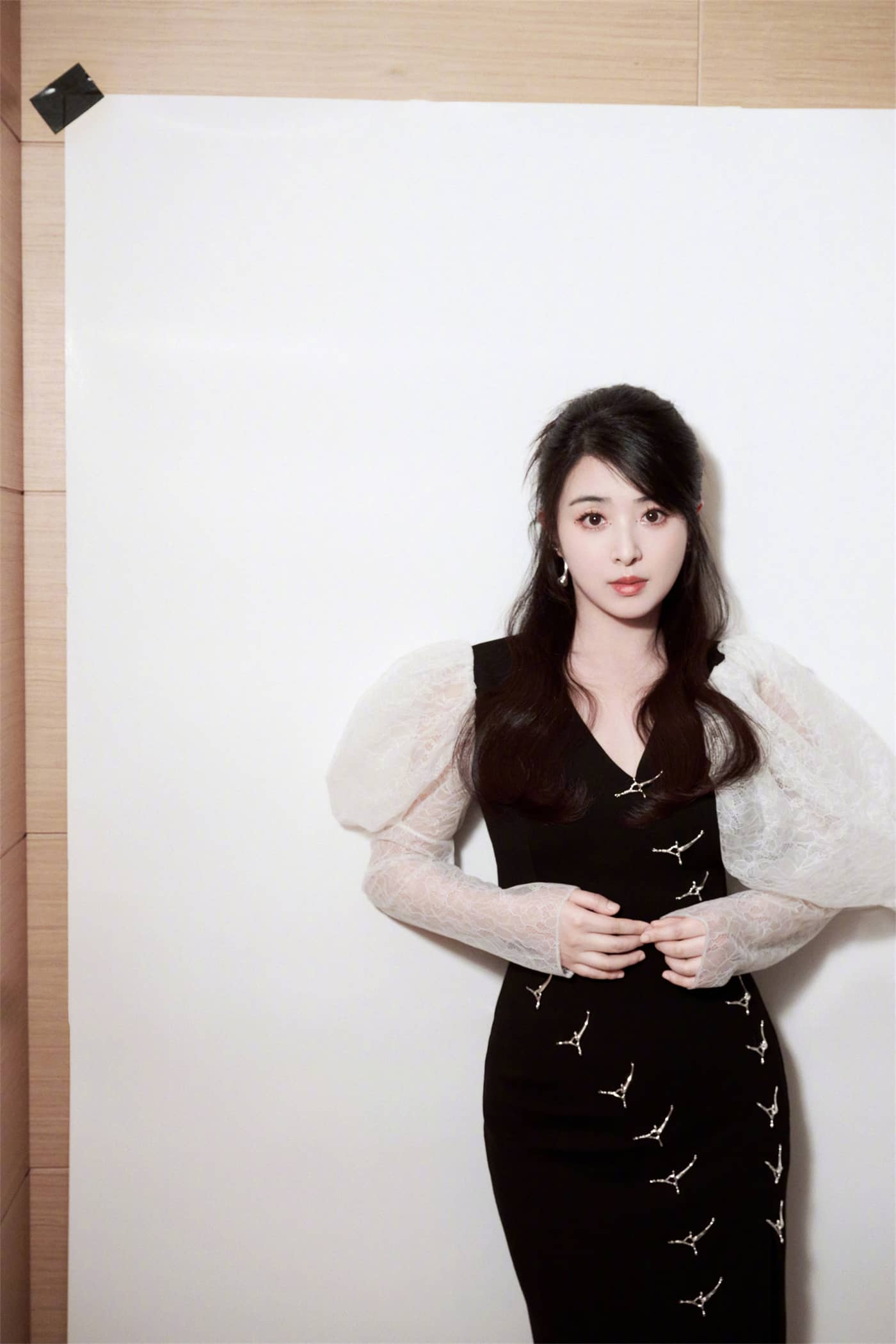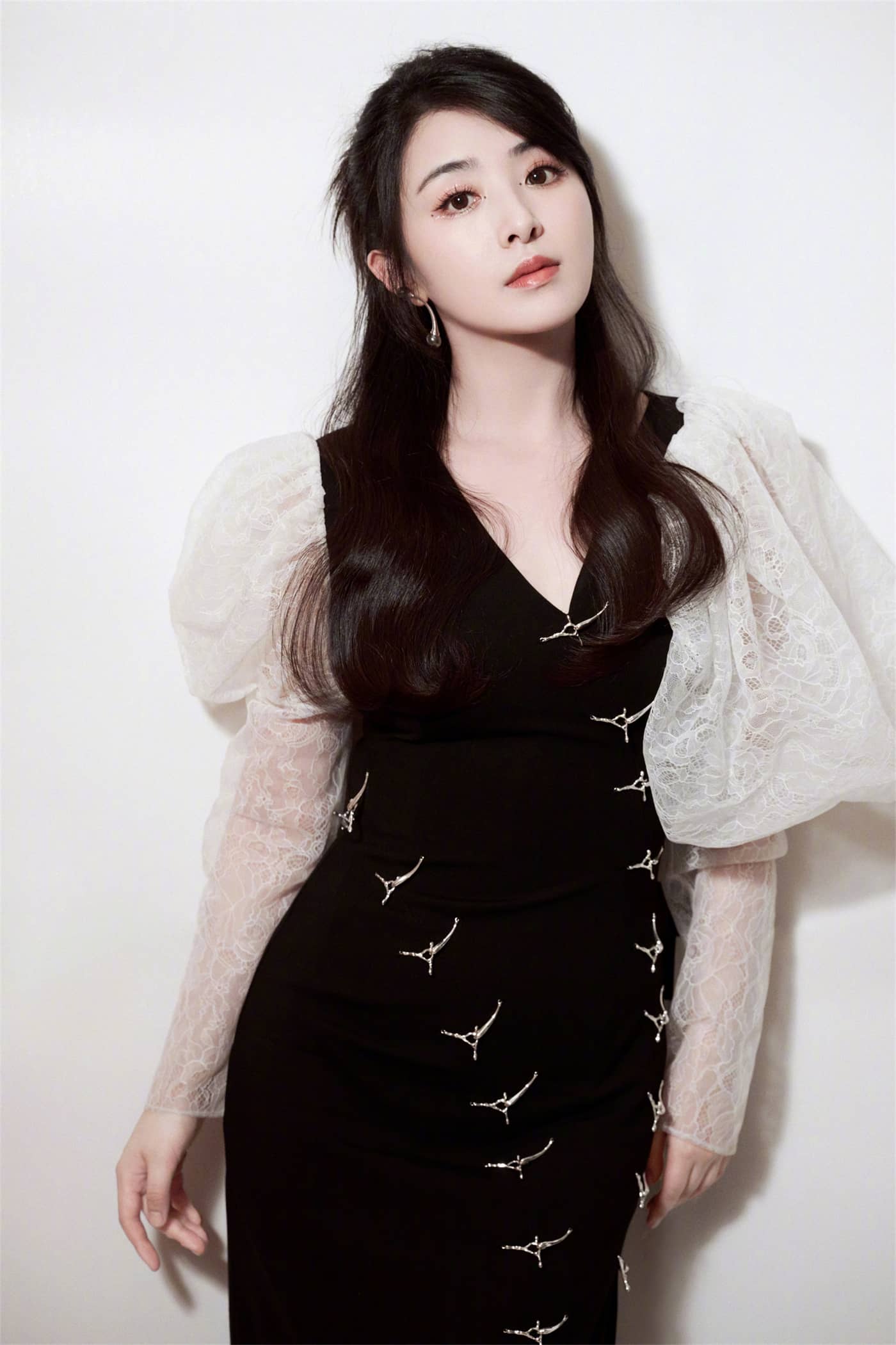 张含韵,边人黑纱裙