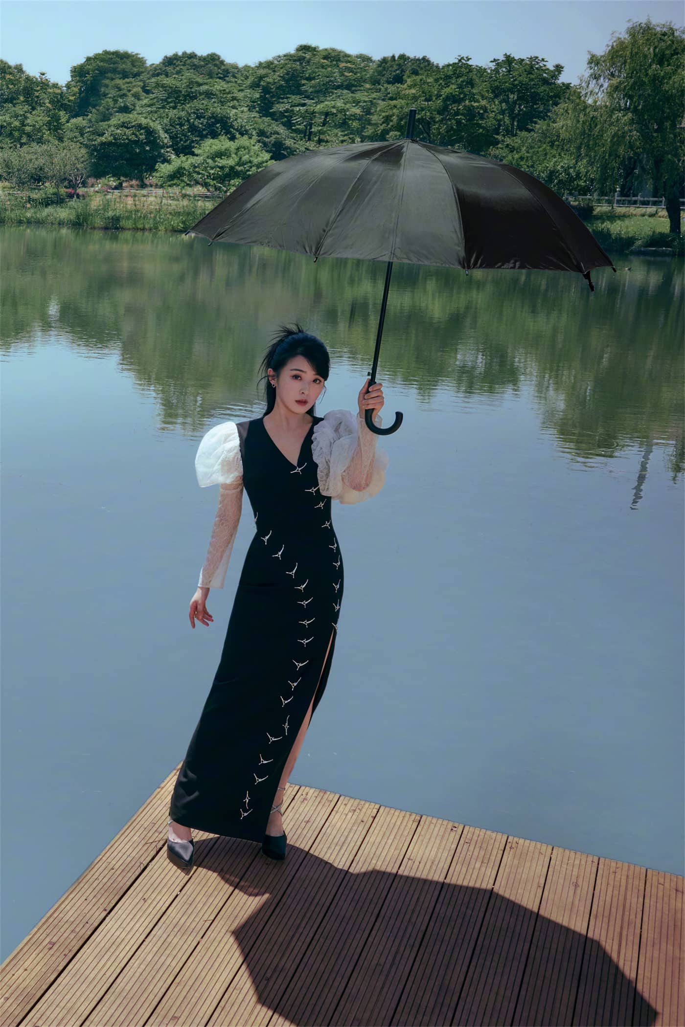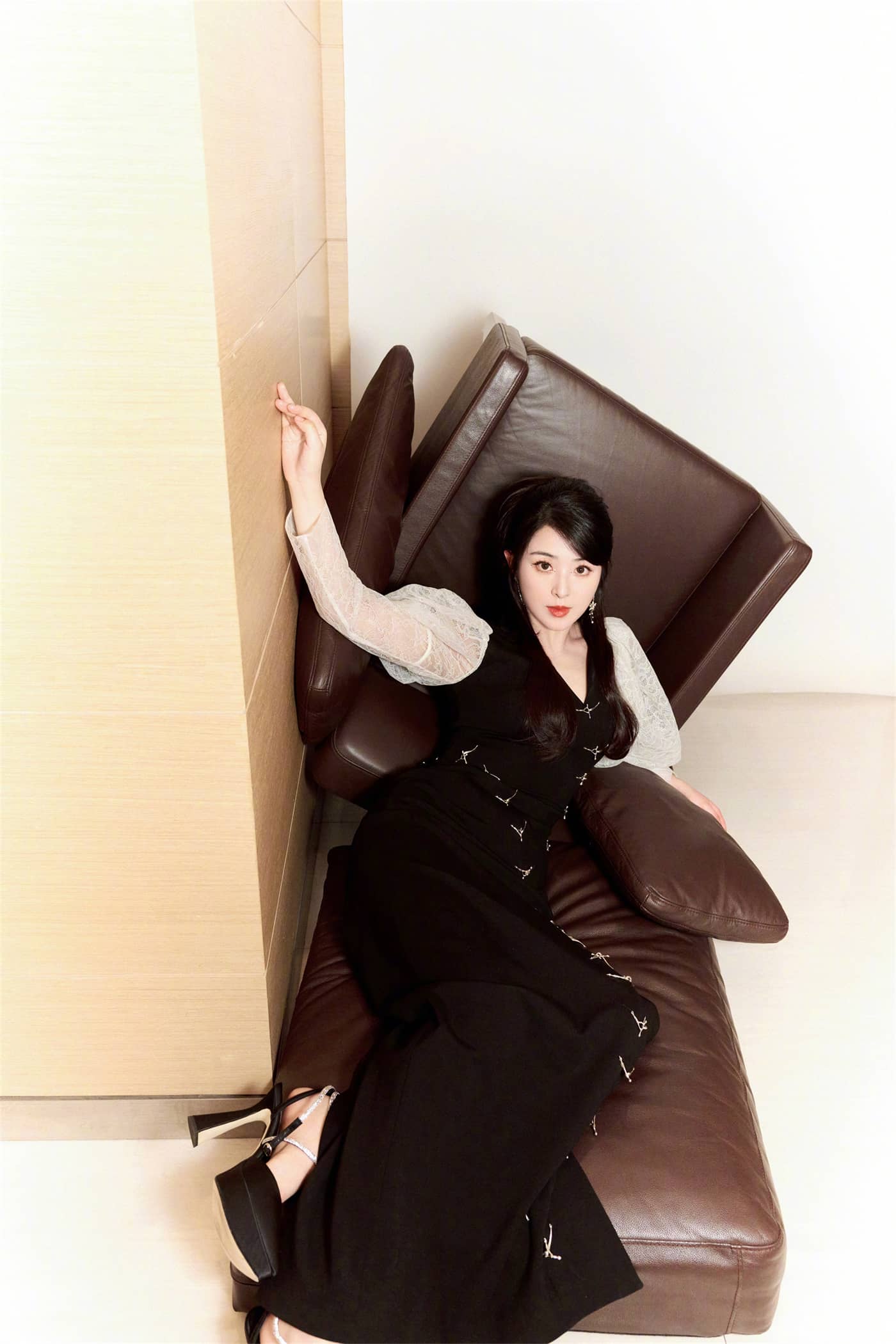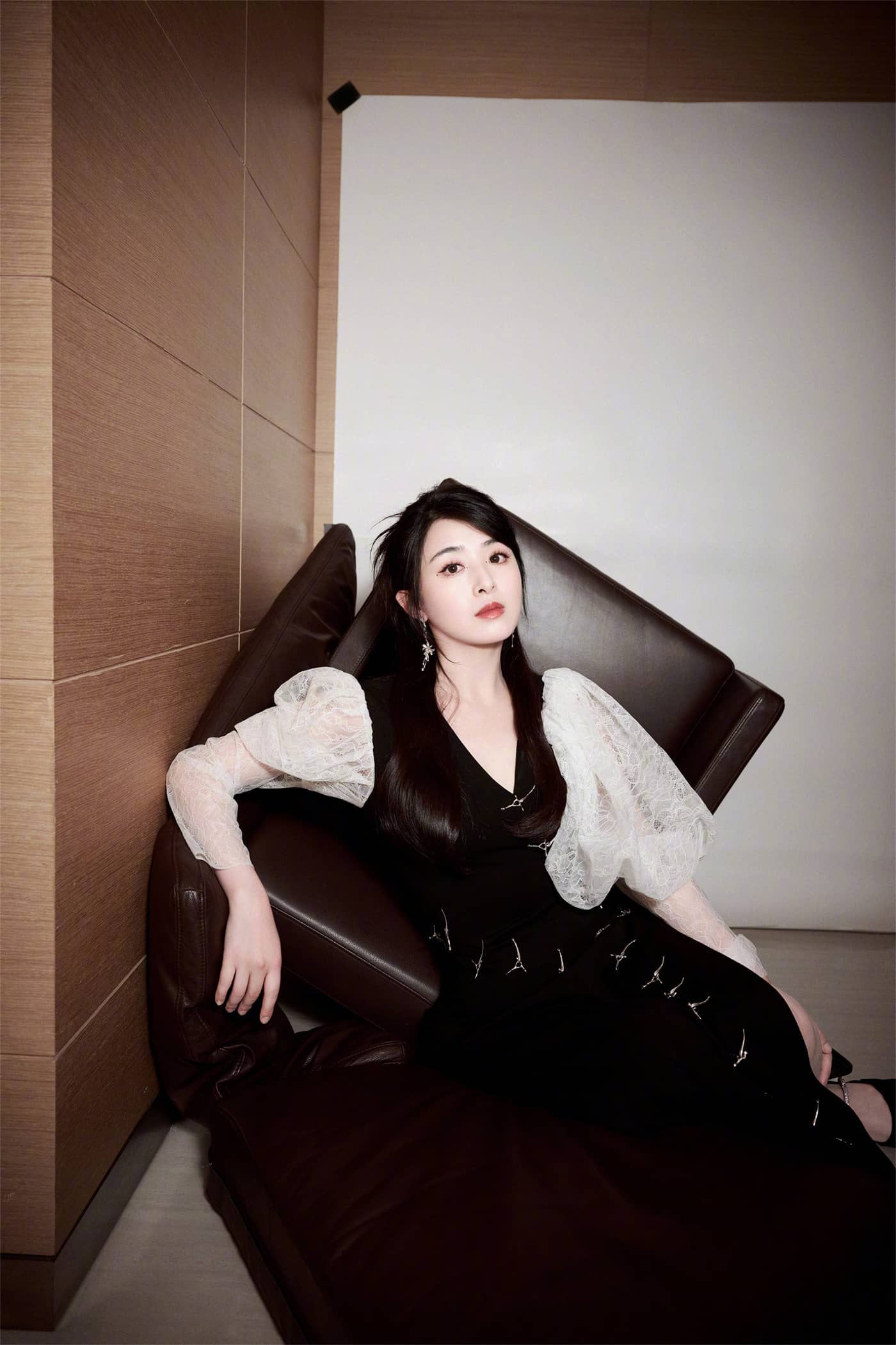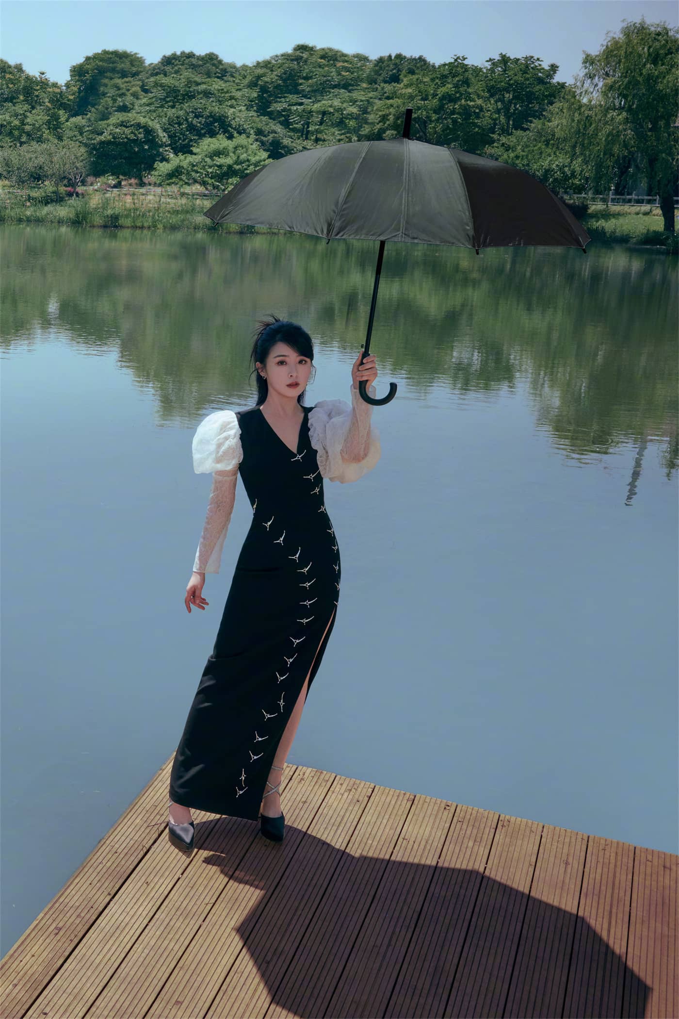 张含韵,边人黑纱裙