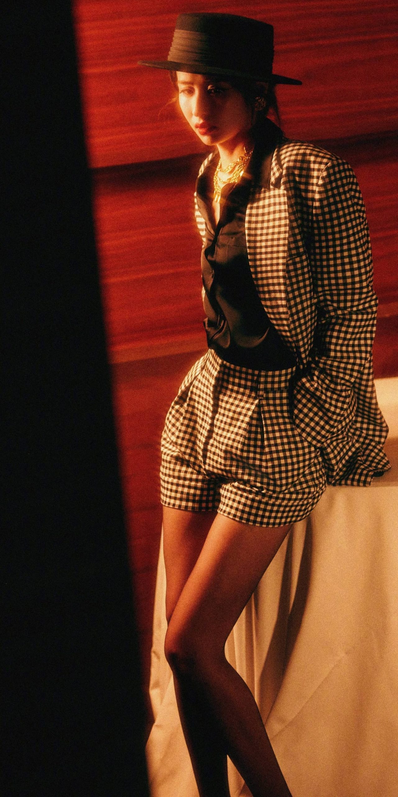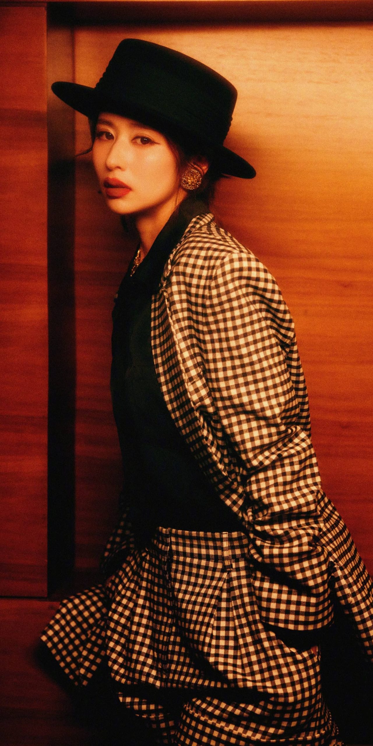 颖儿格纹丝袜妆造大片