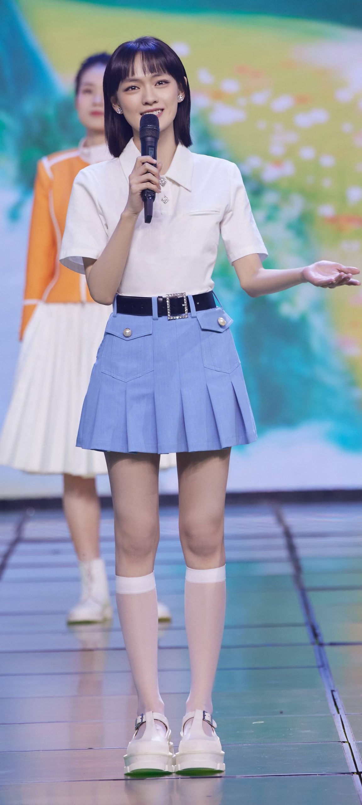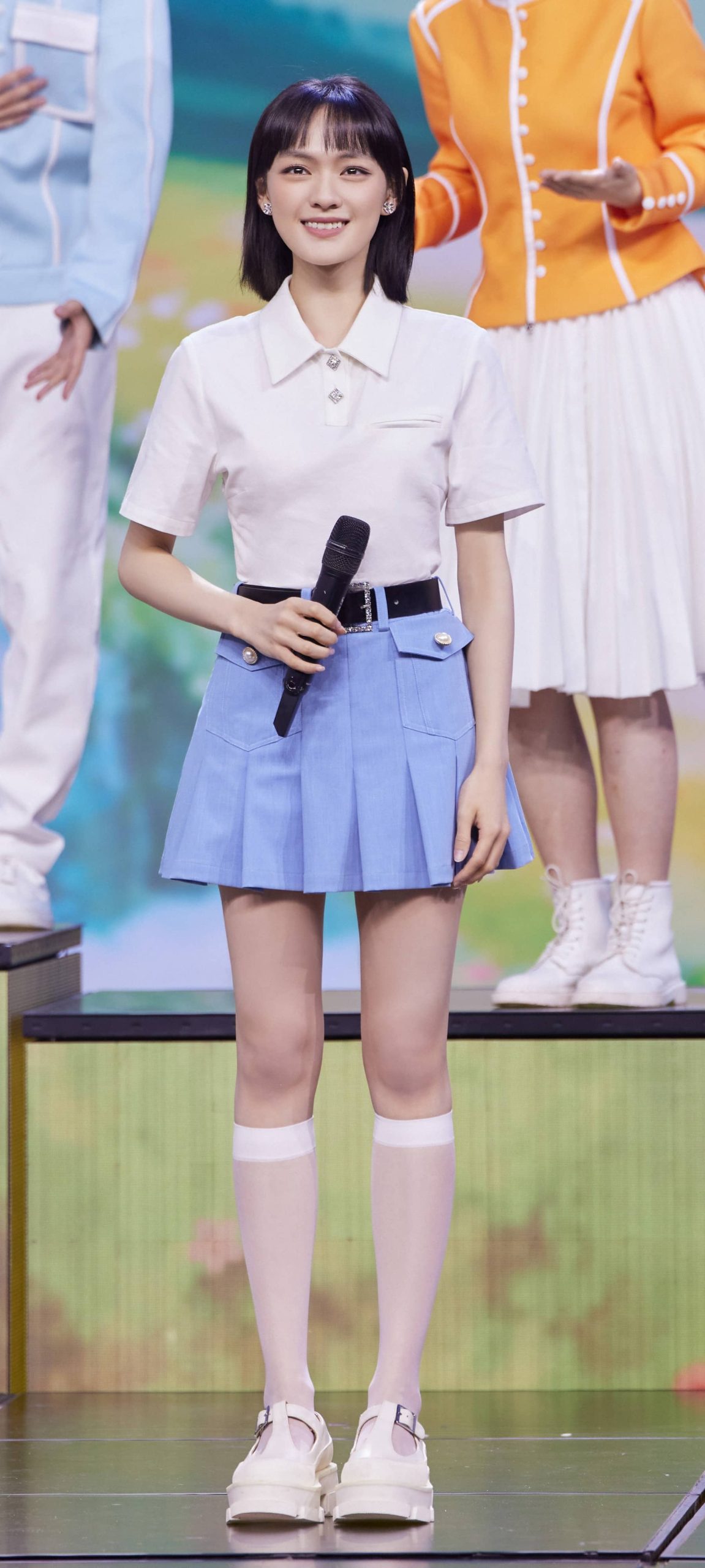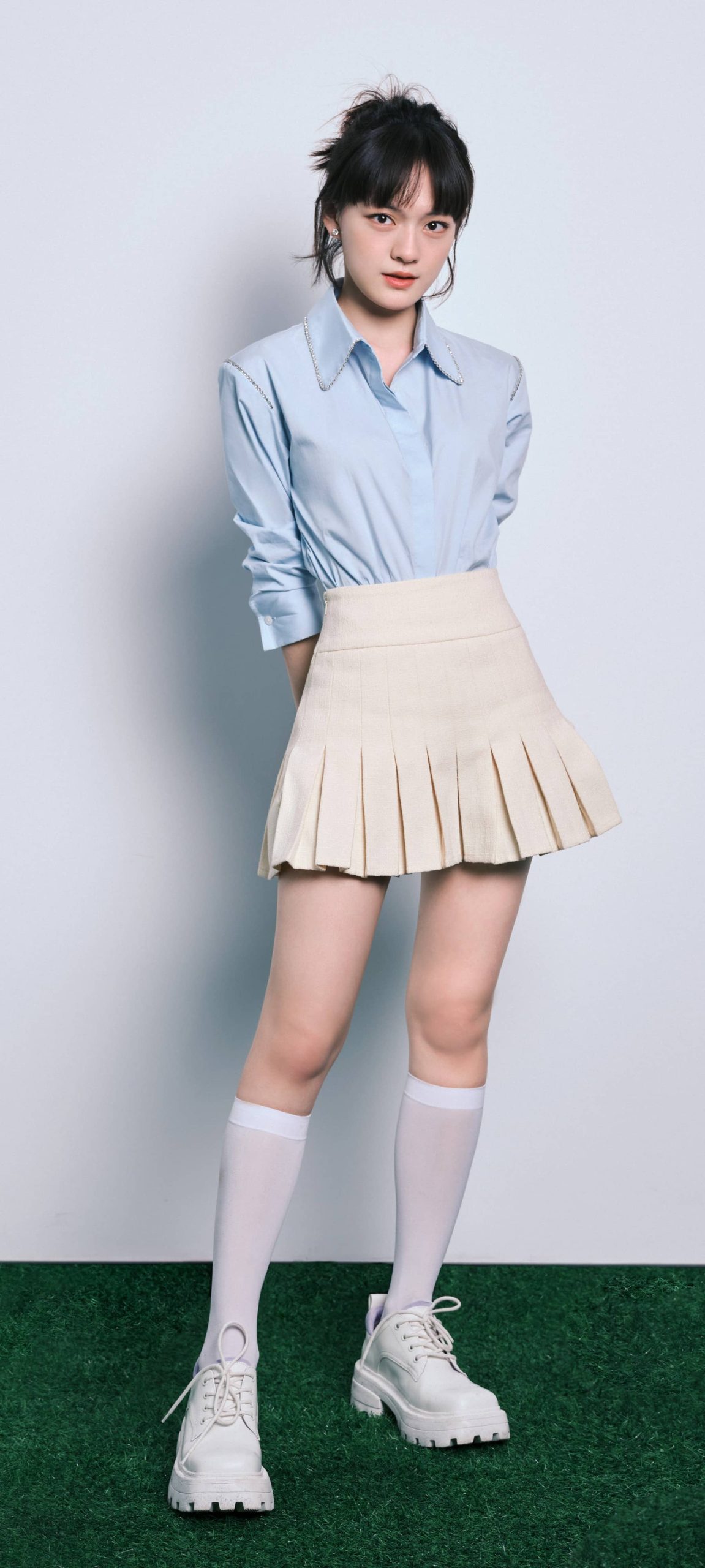 文淇穿搭壁纸:丝袜妆造大长腿