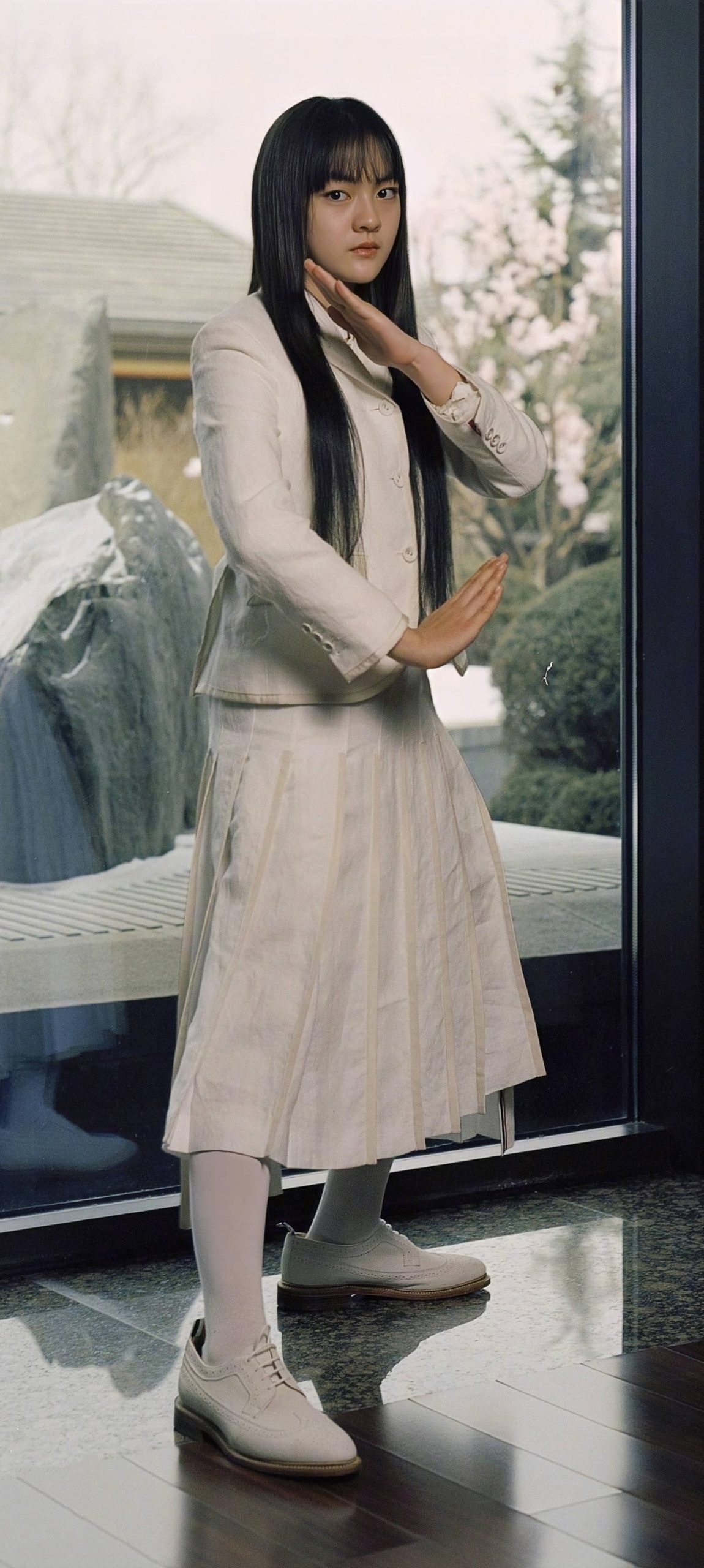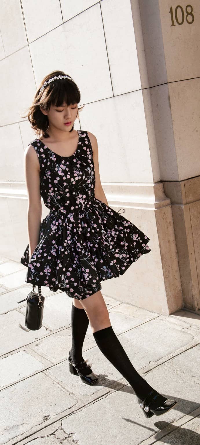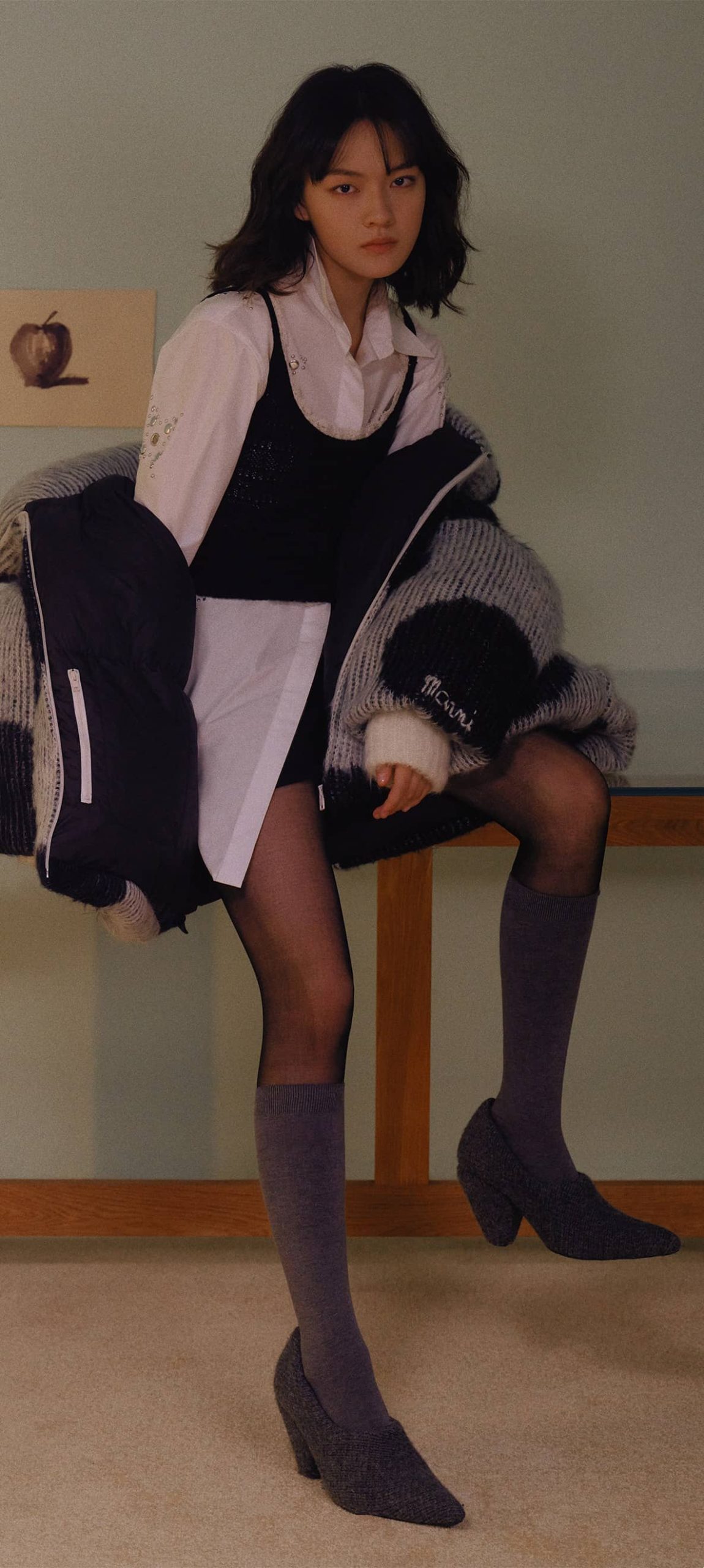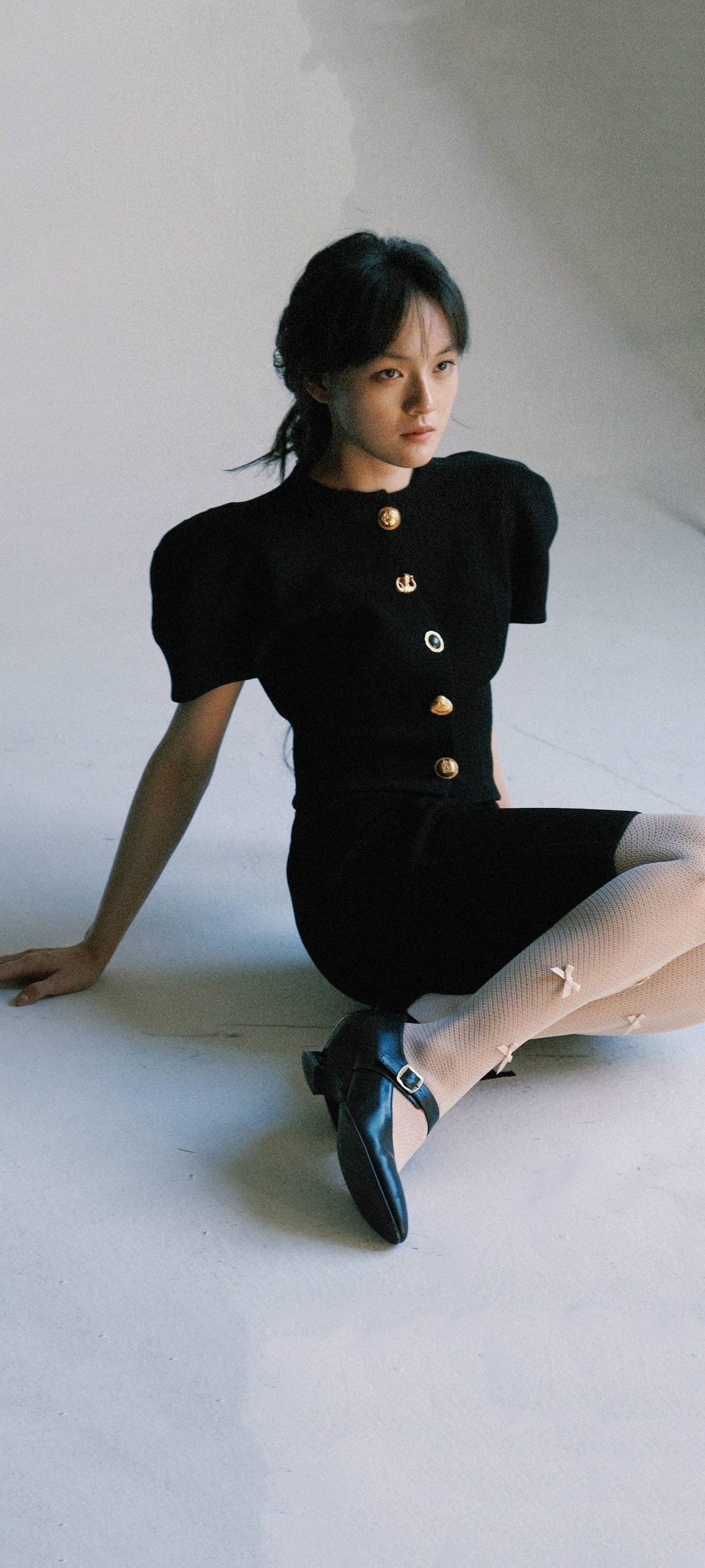 文淇穿搭壁纸:丝袜妆造大长腿