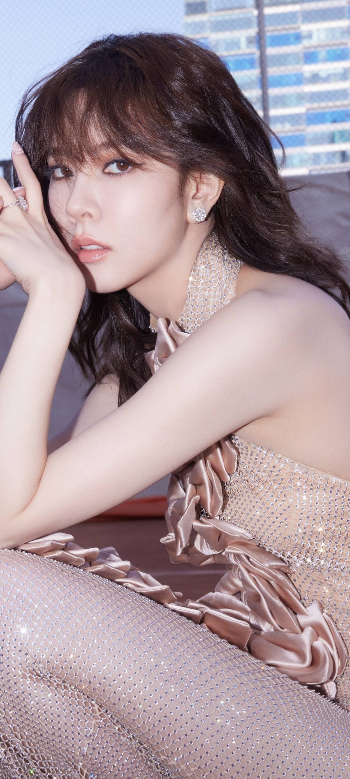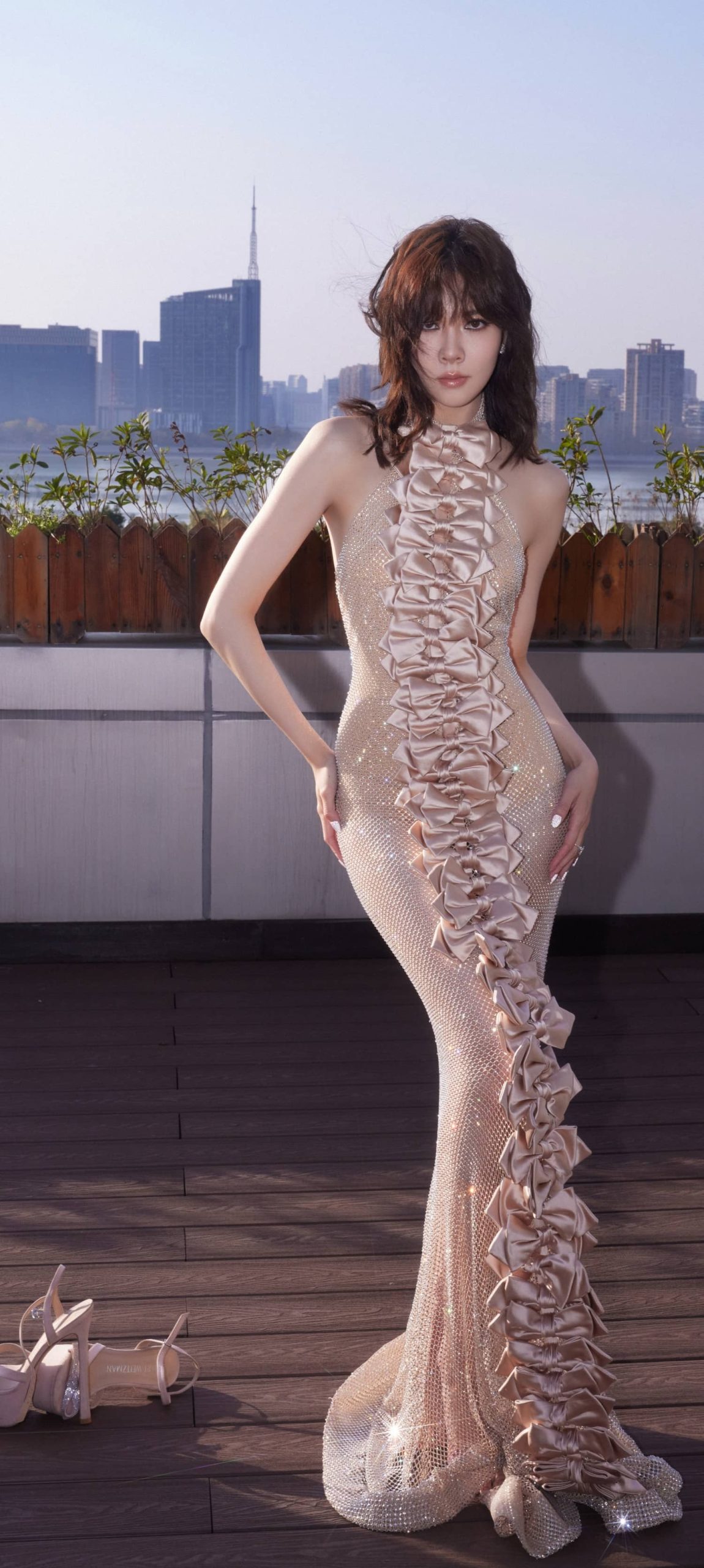 宋妍霏星光纱裙,秀出婀娜好身材