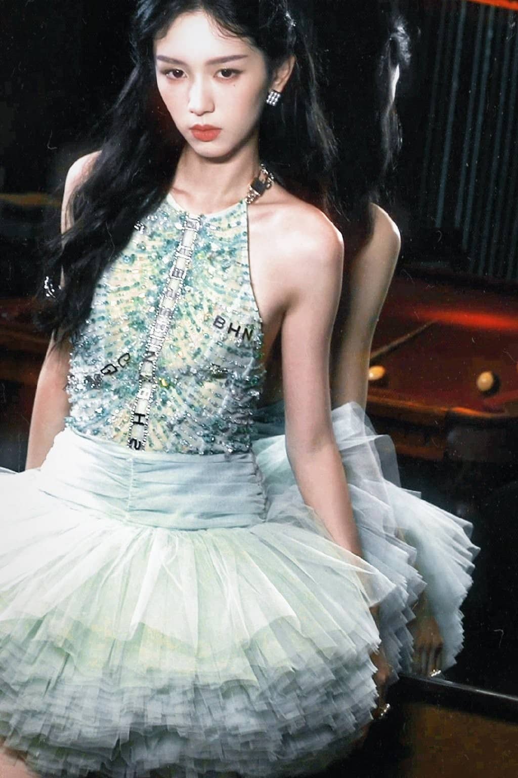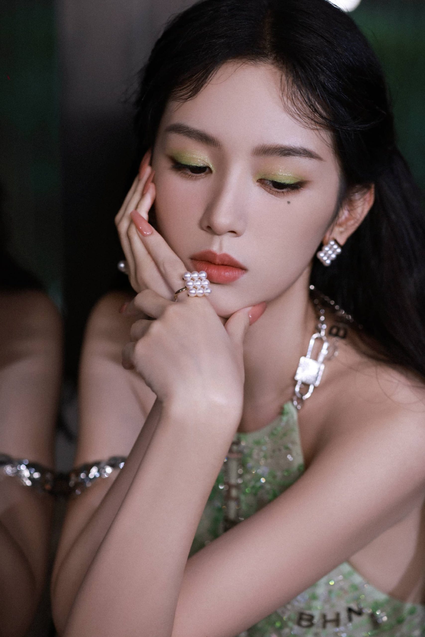 周也,绿色千层蛋糕裙,清新怡人