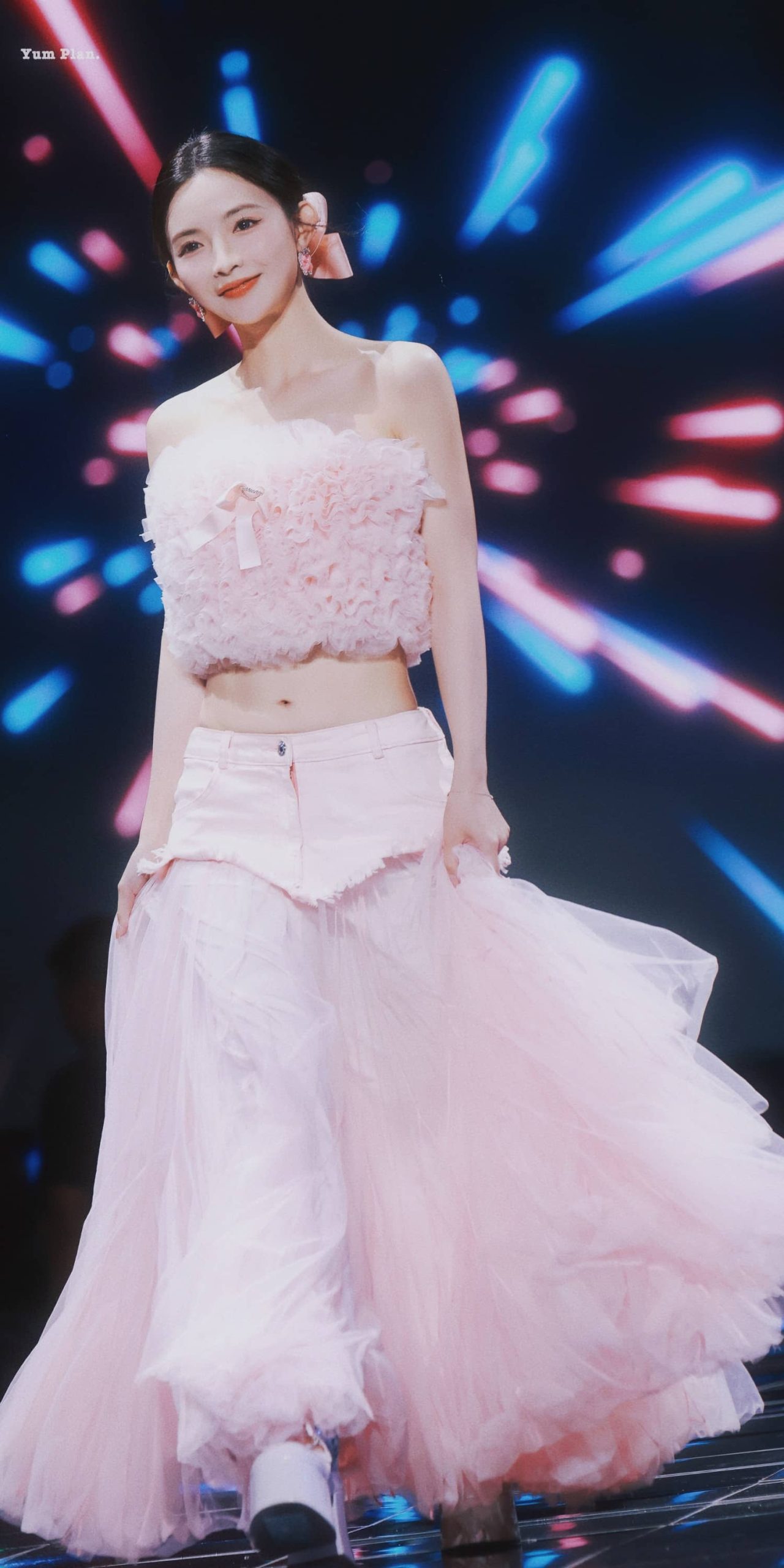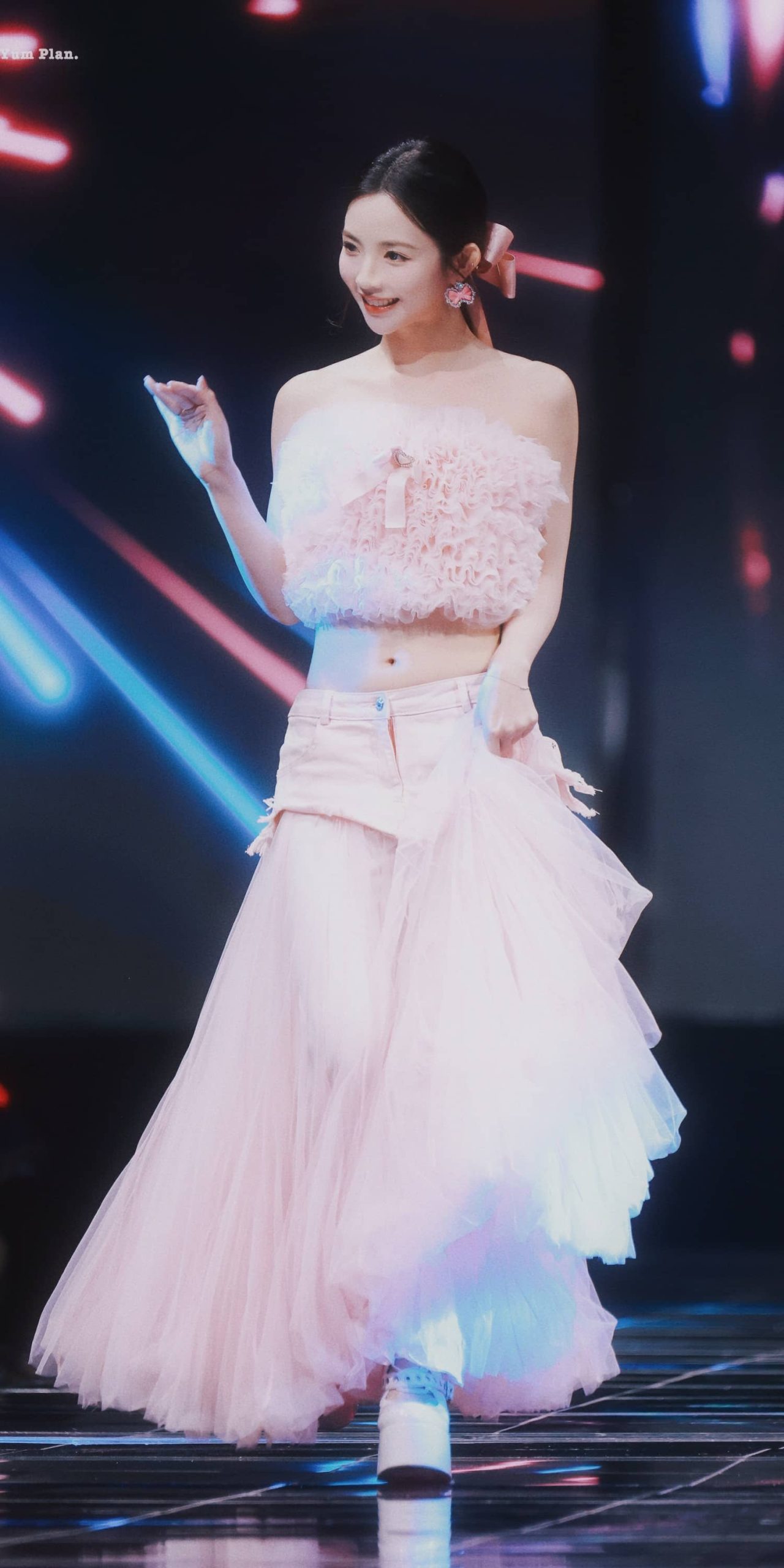 许杨玉琢露脐装舞台,淡纱穿搭曼妙甜美