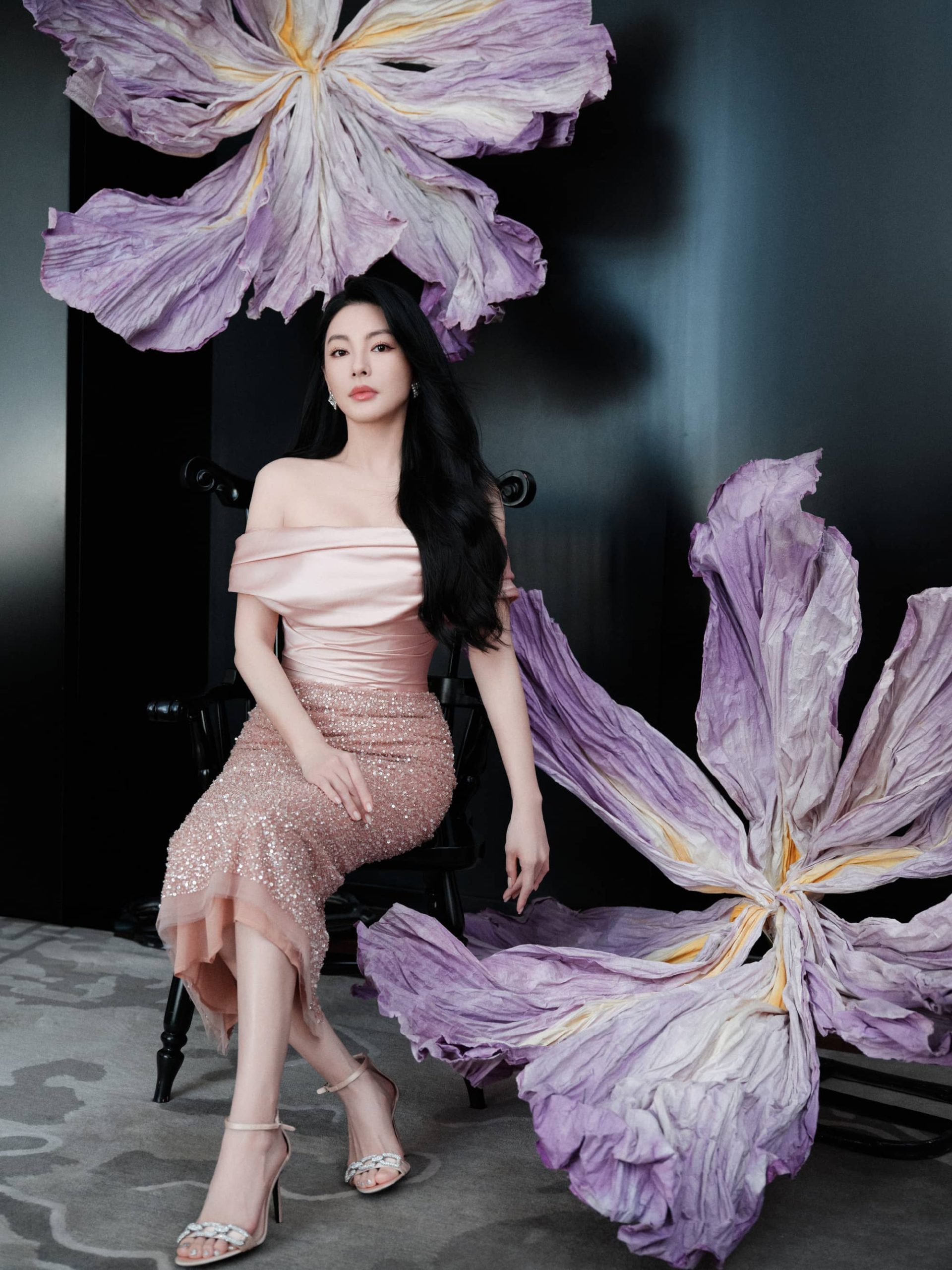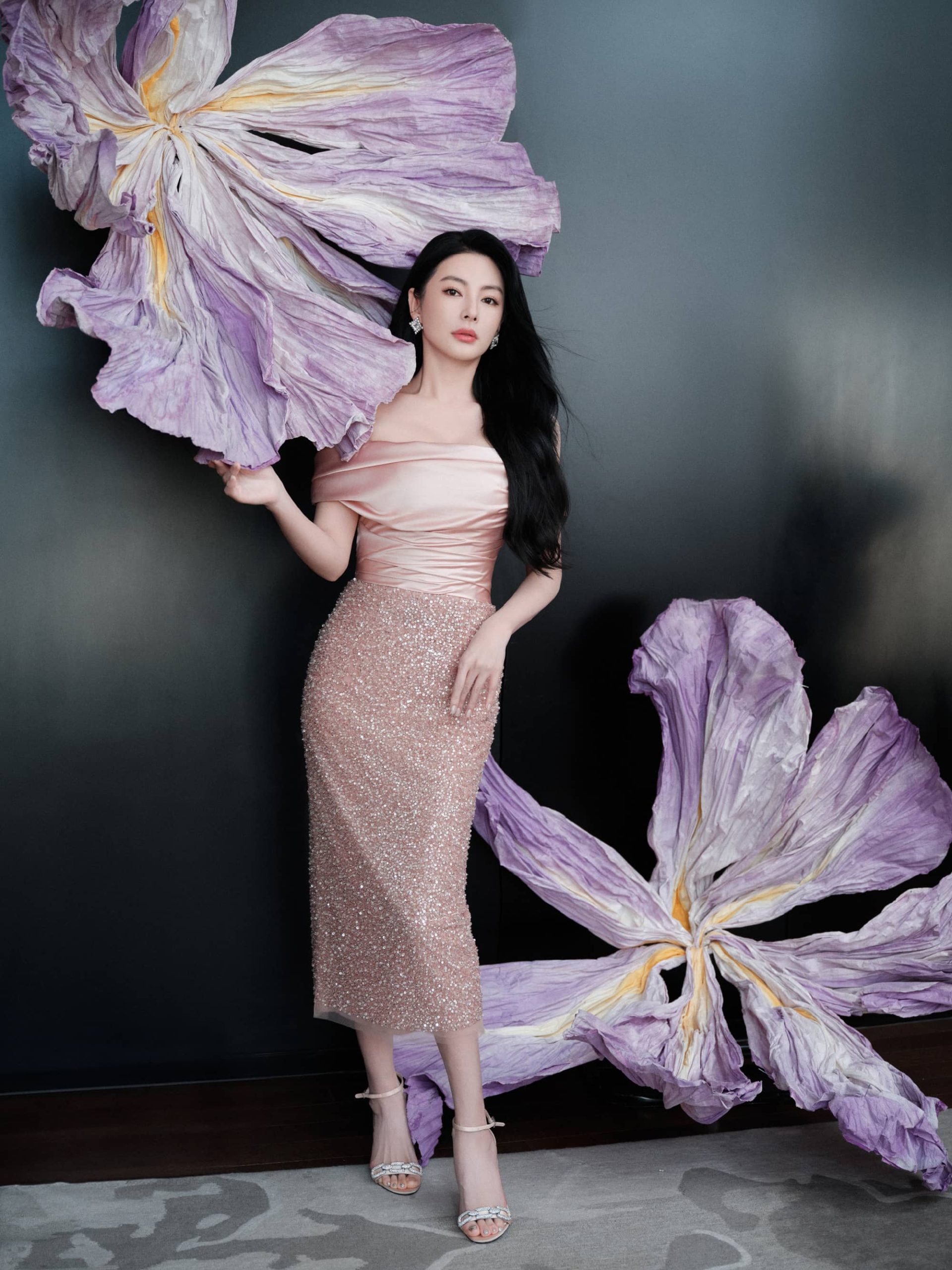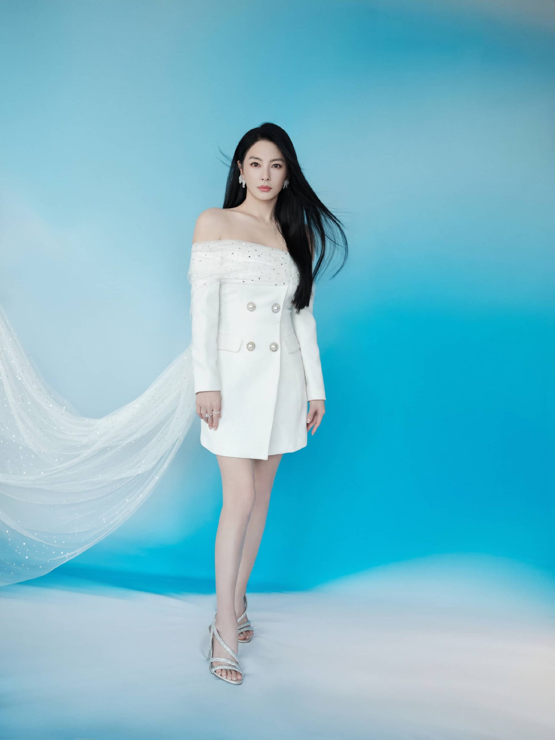 张雨绮抹胸纱裙,化身优雅小画家