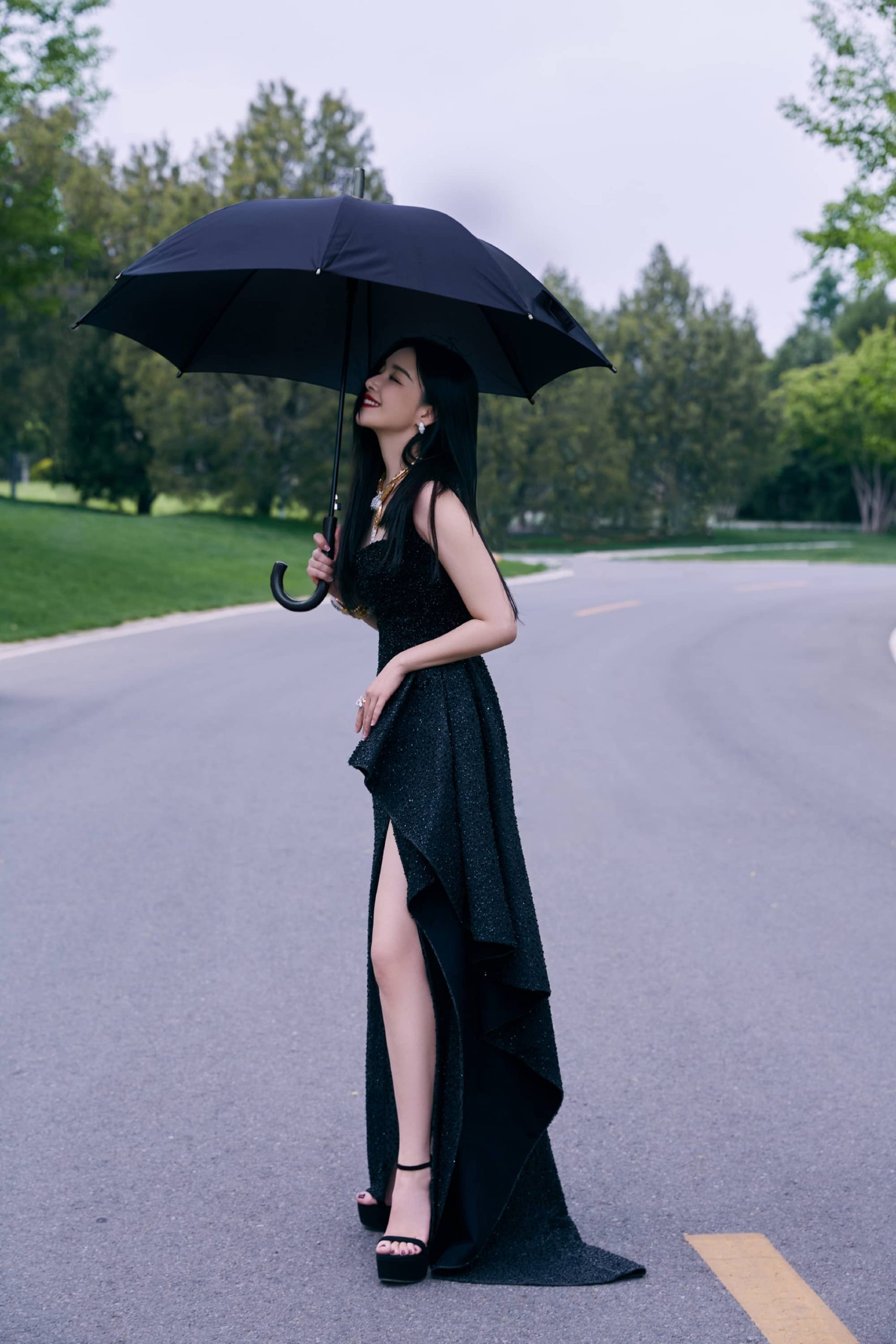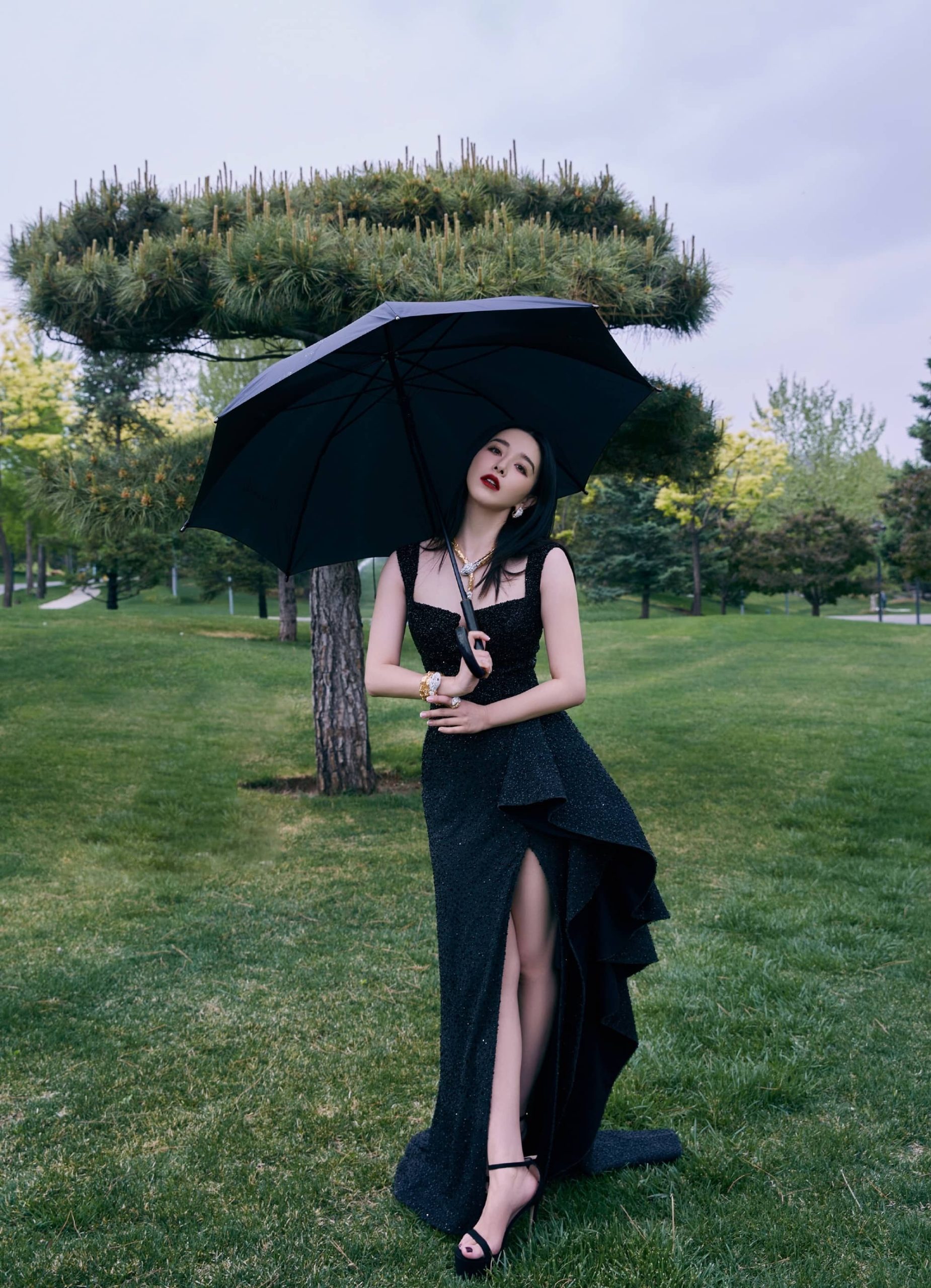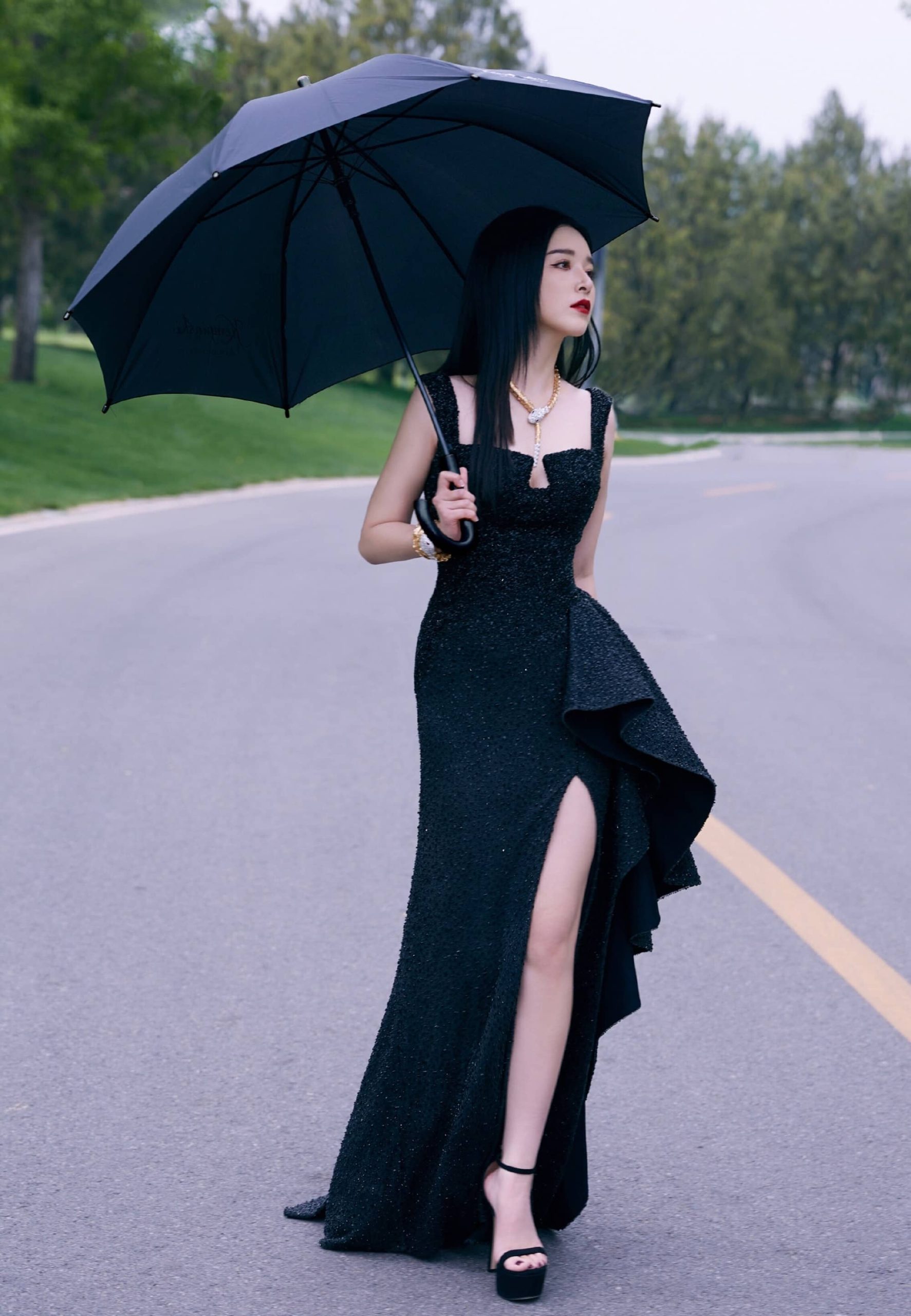 阚清子,红唇黑裙妆造,冷酷迷人
