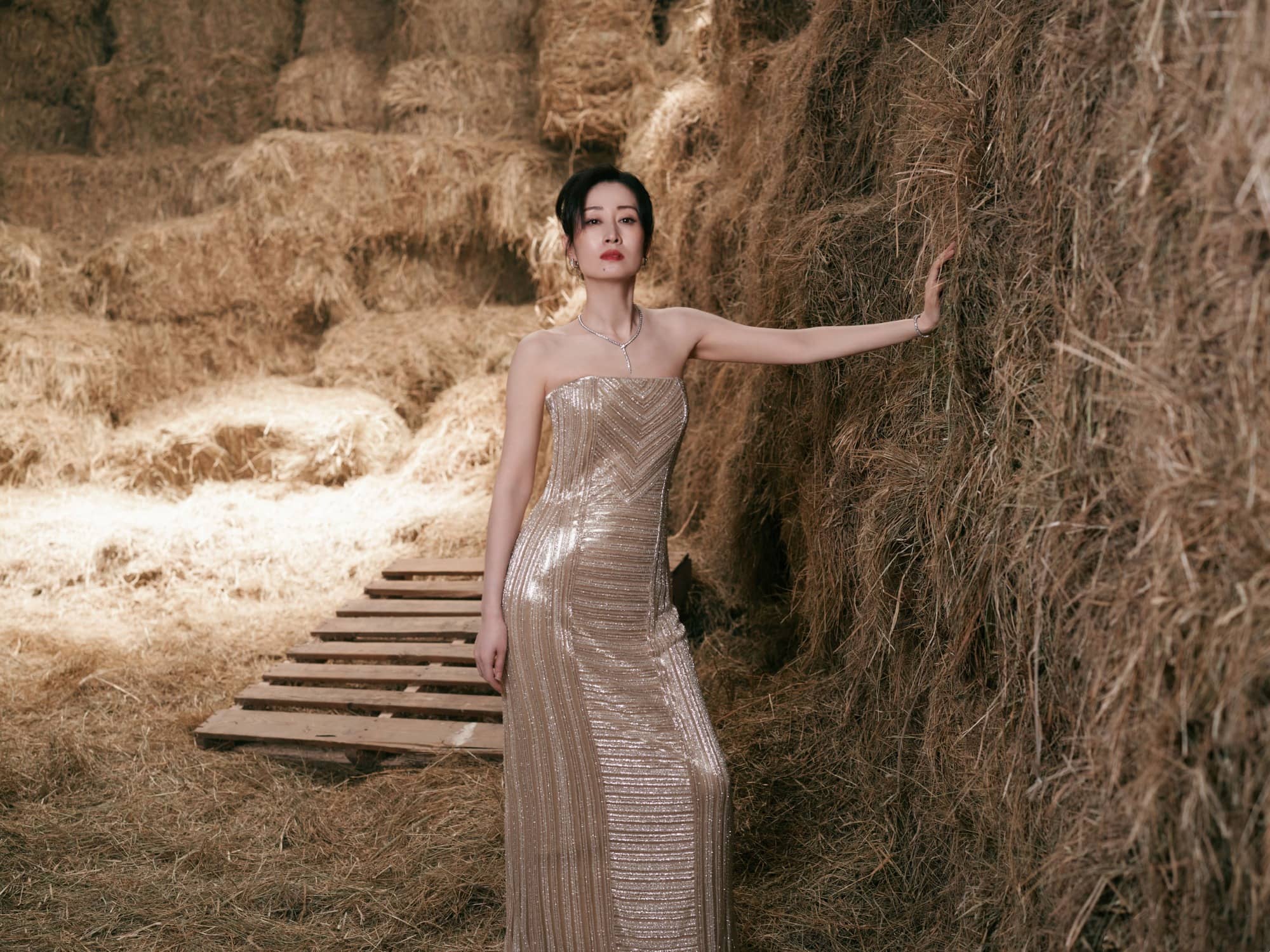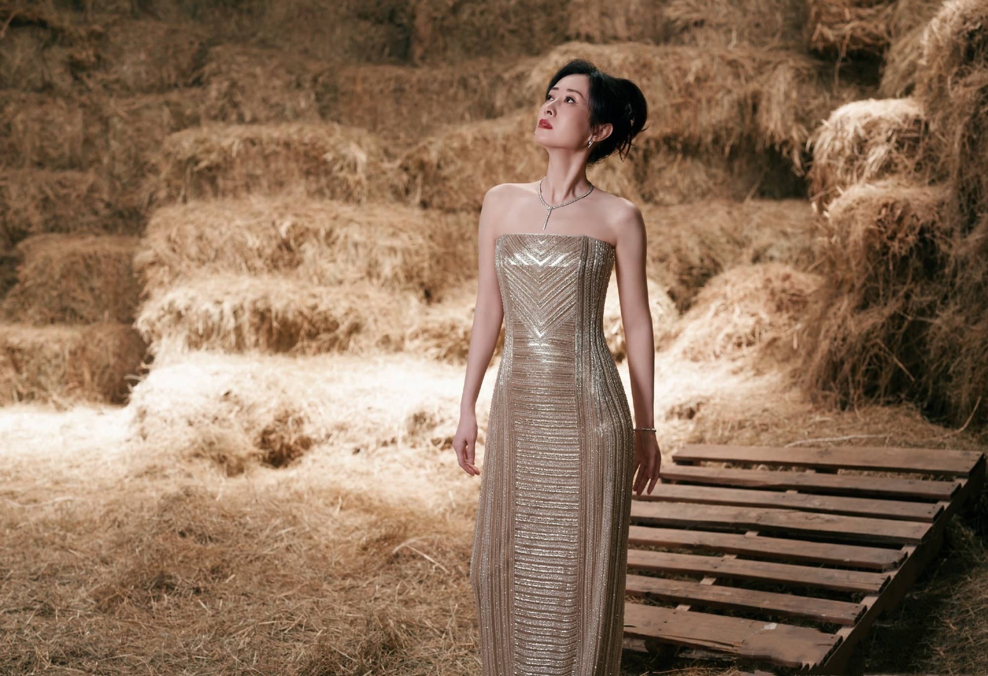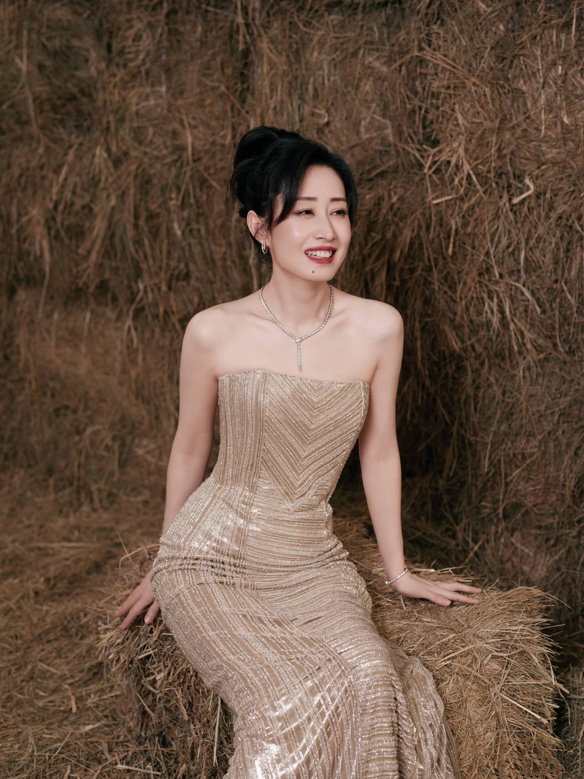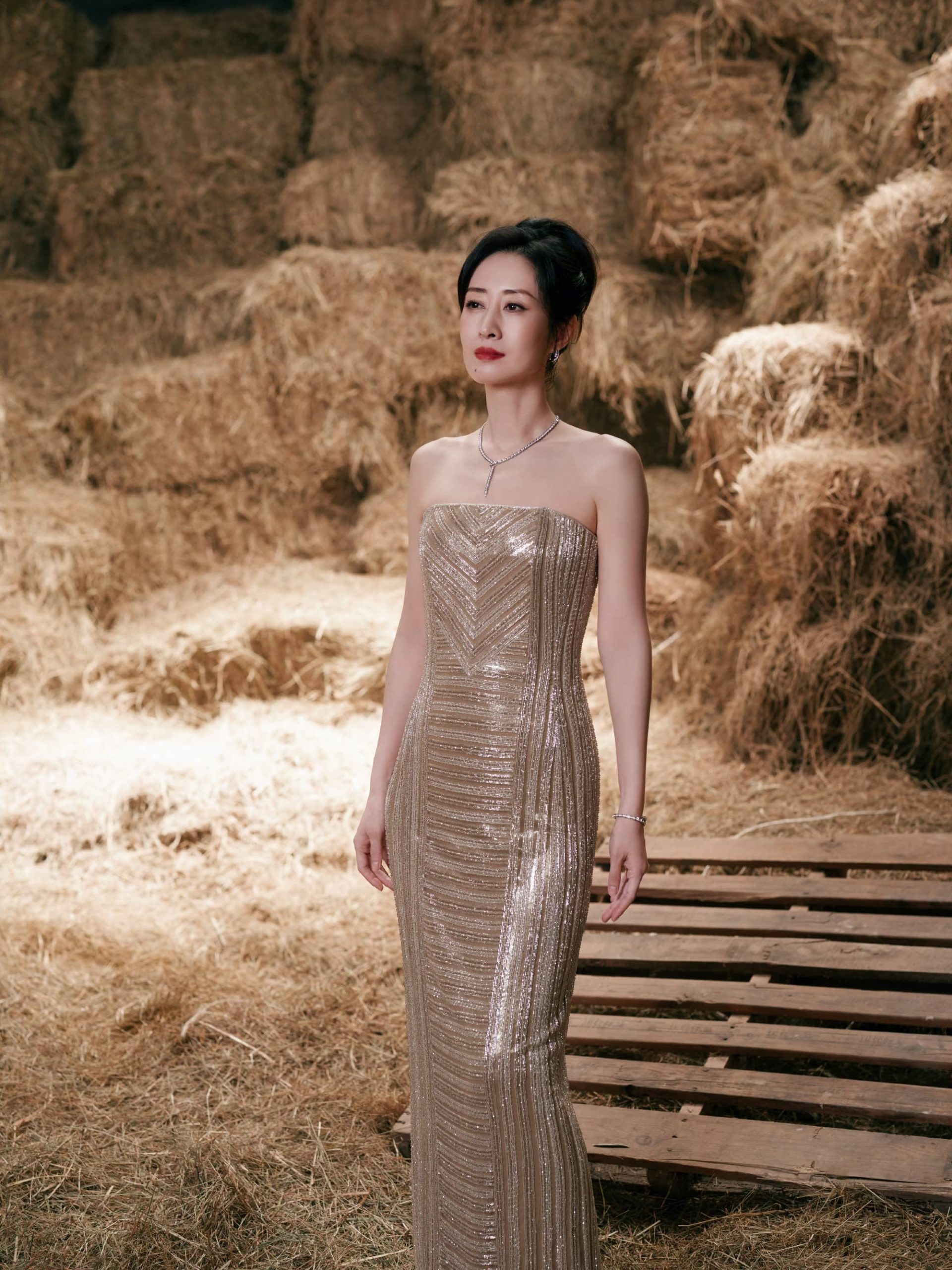 刘敏涛大姐姐,鎏金抹胸裙,曼妙柔美