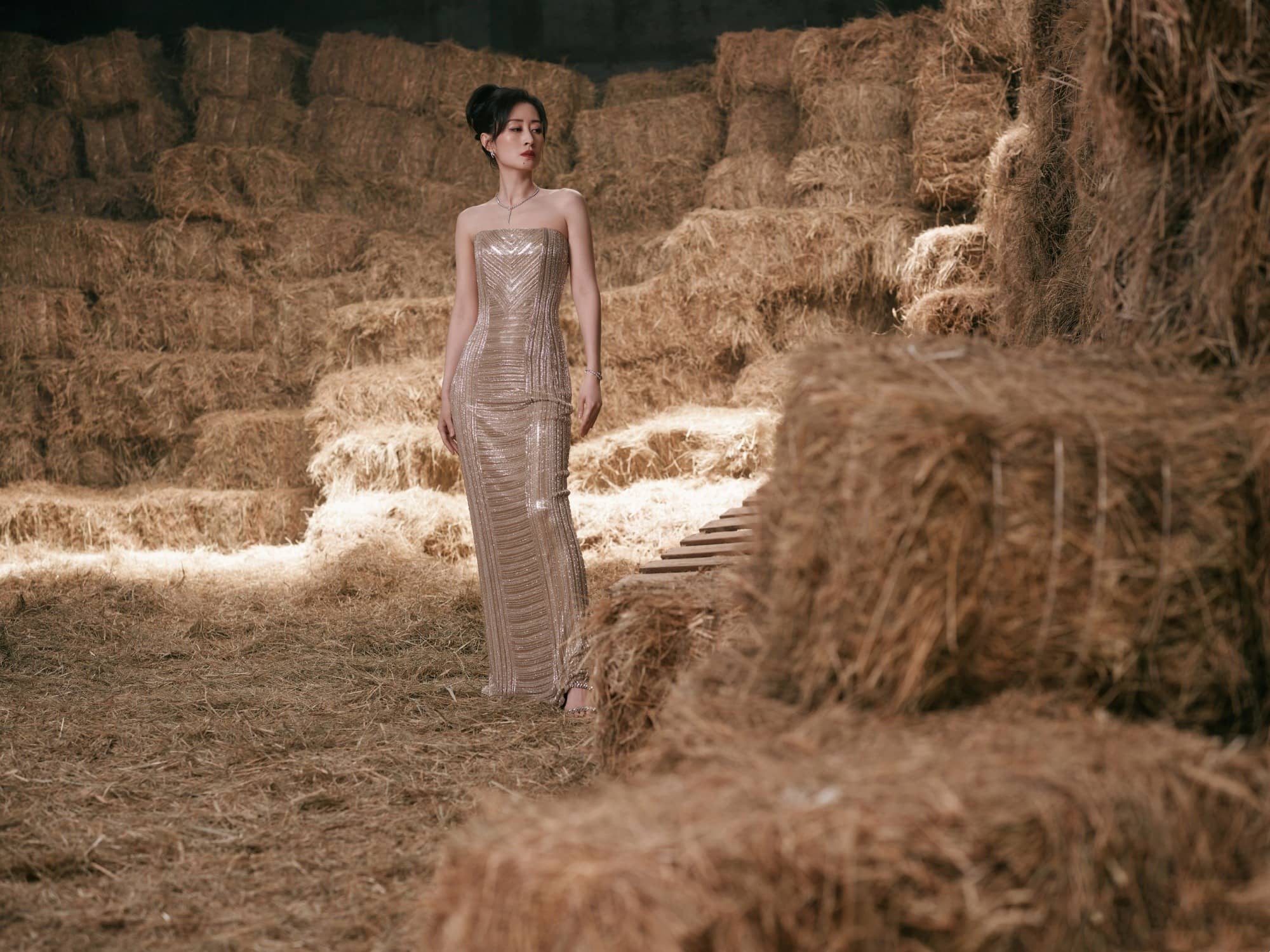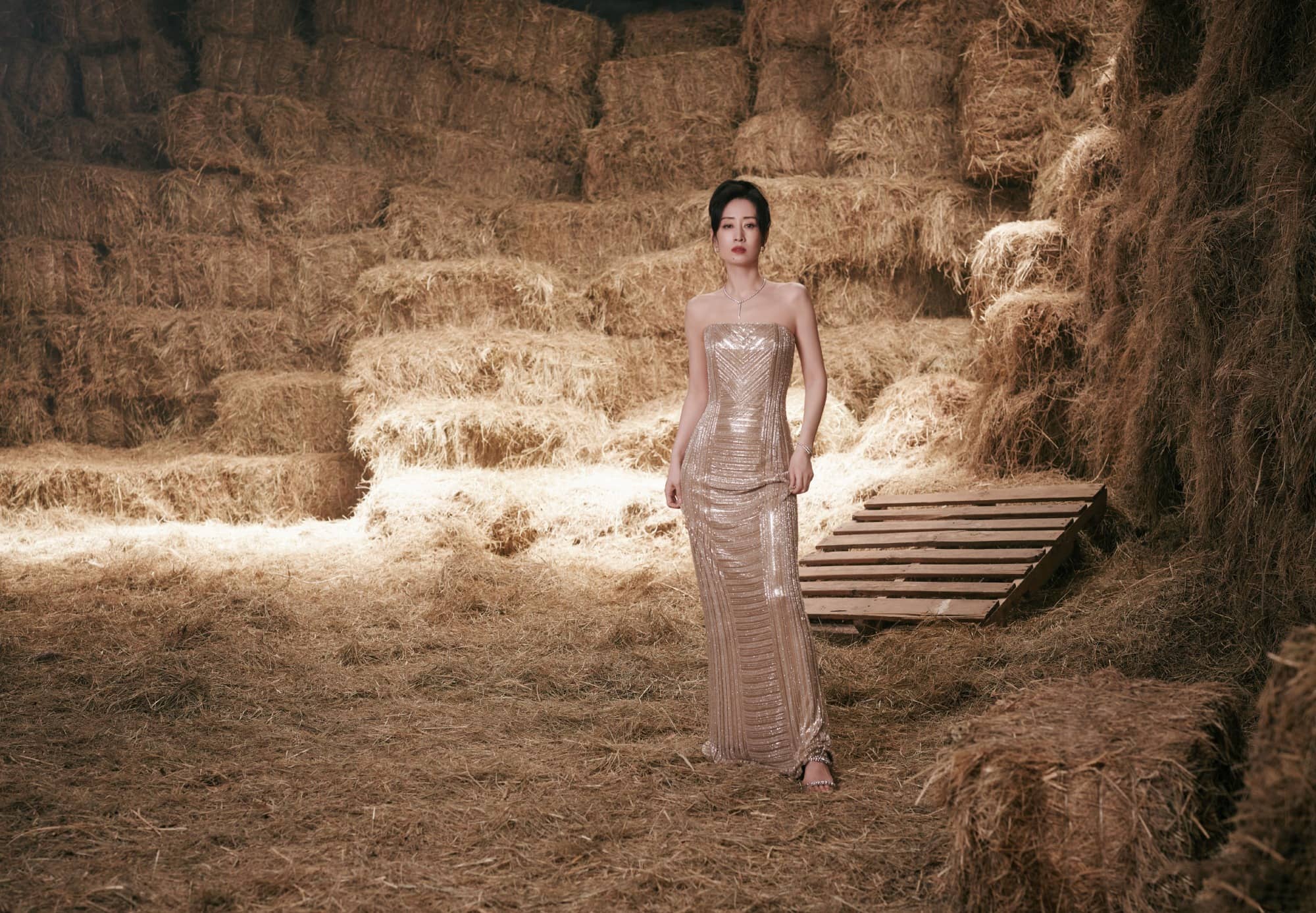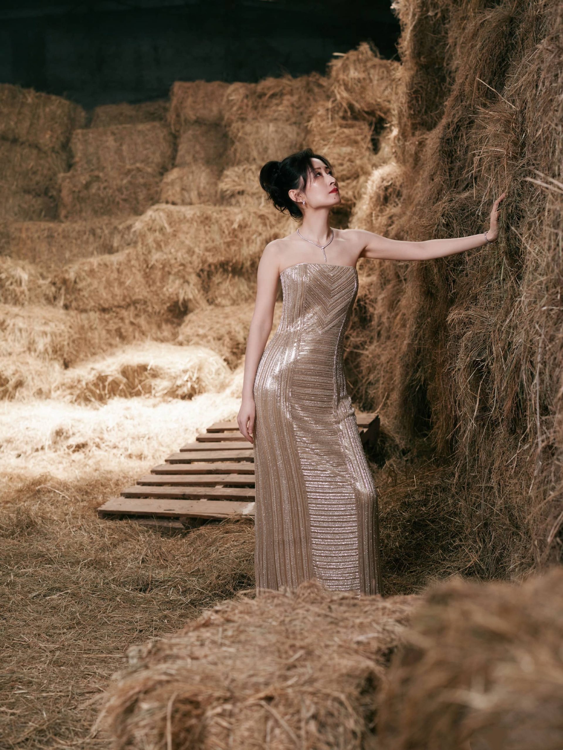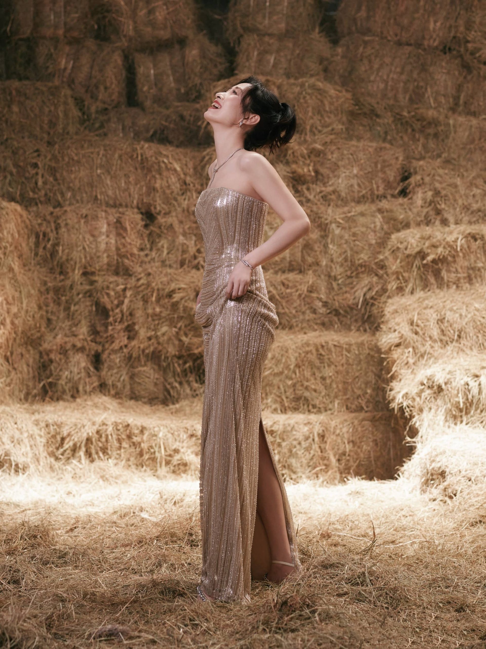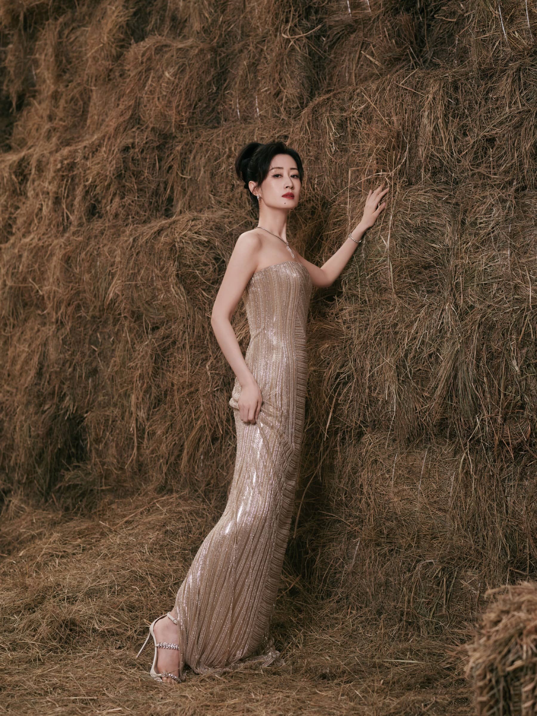 刘敏涛大姐姐,鎏金抹胸裙,曼妙柔美