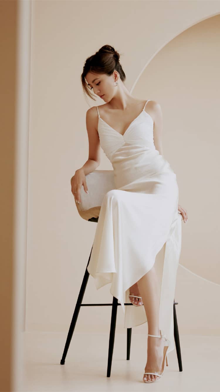 吴千语,白裙大长腿妆造,浪漫纯美