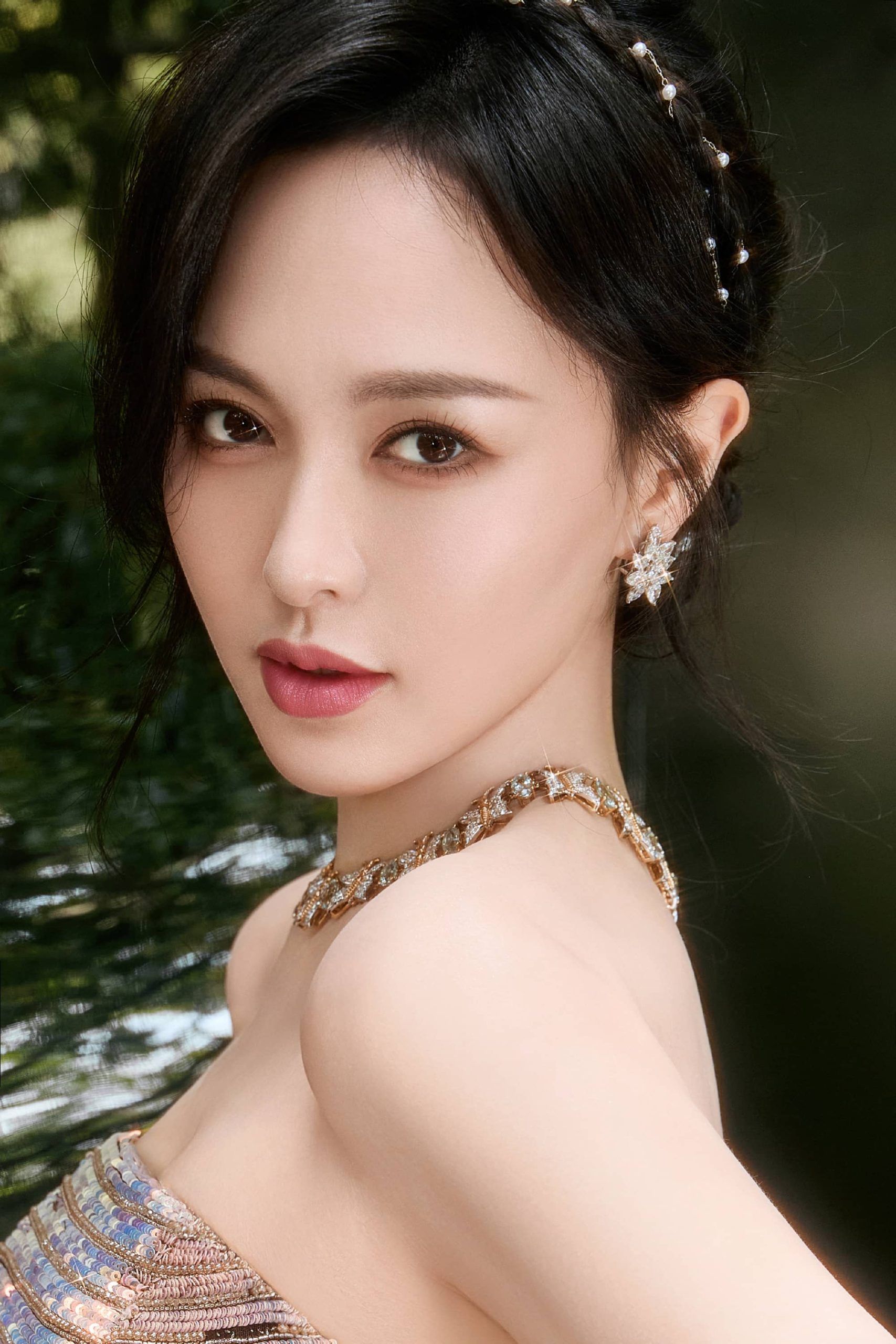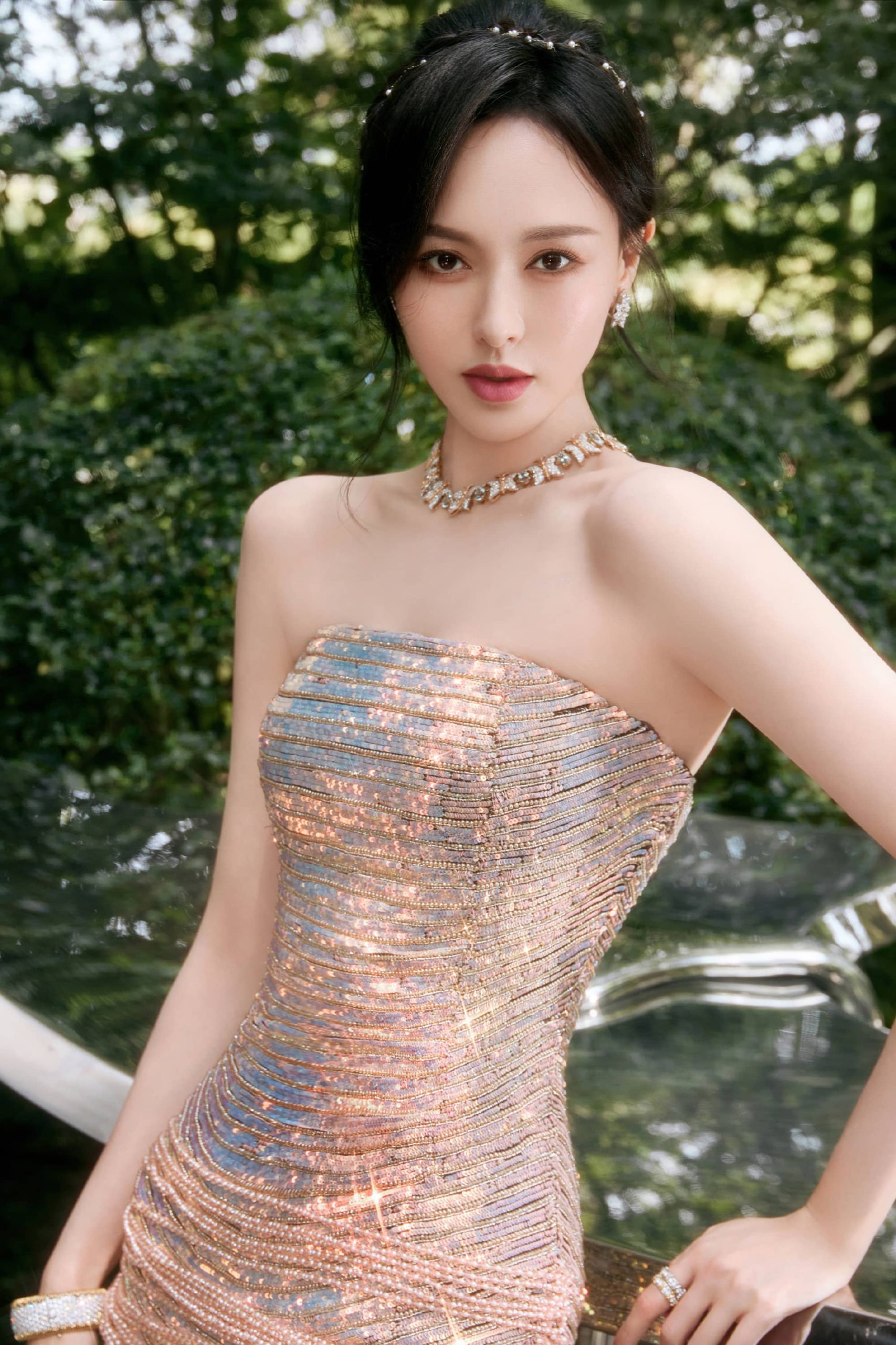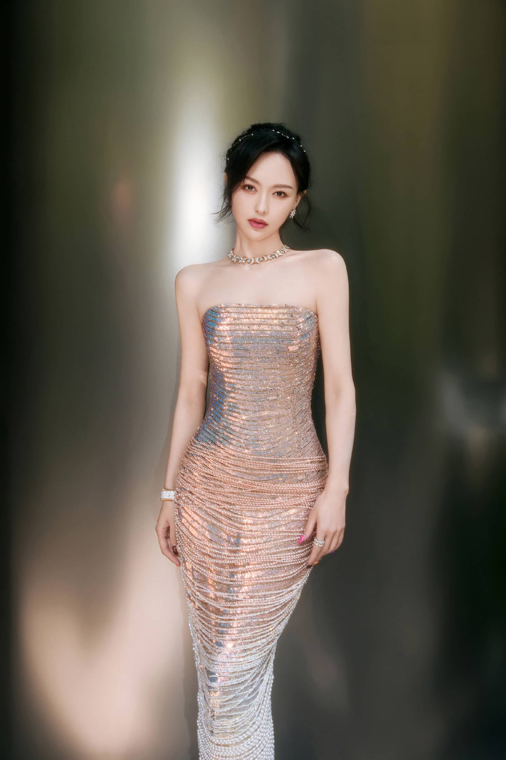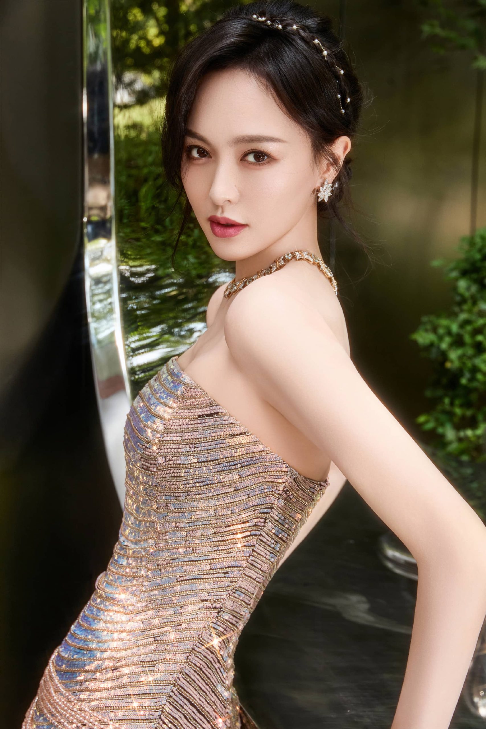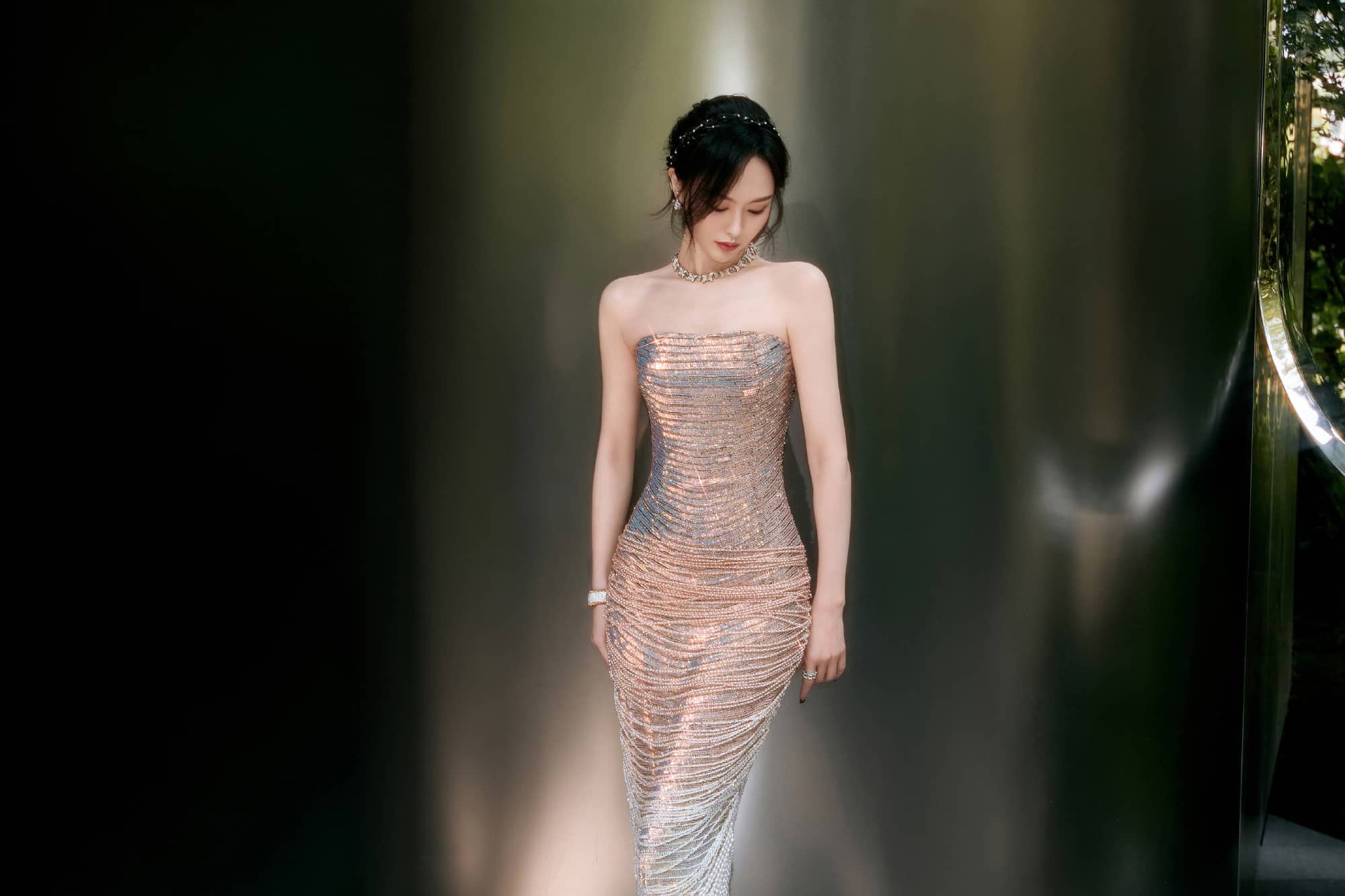 唐嫣今日仙气美人上线, 鎏光绿意,松弛感满溢