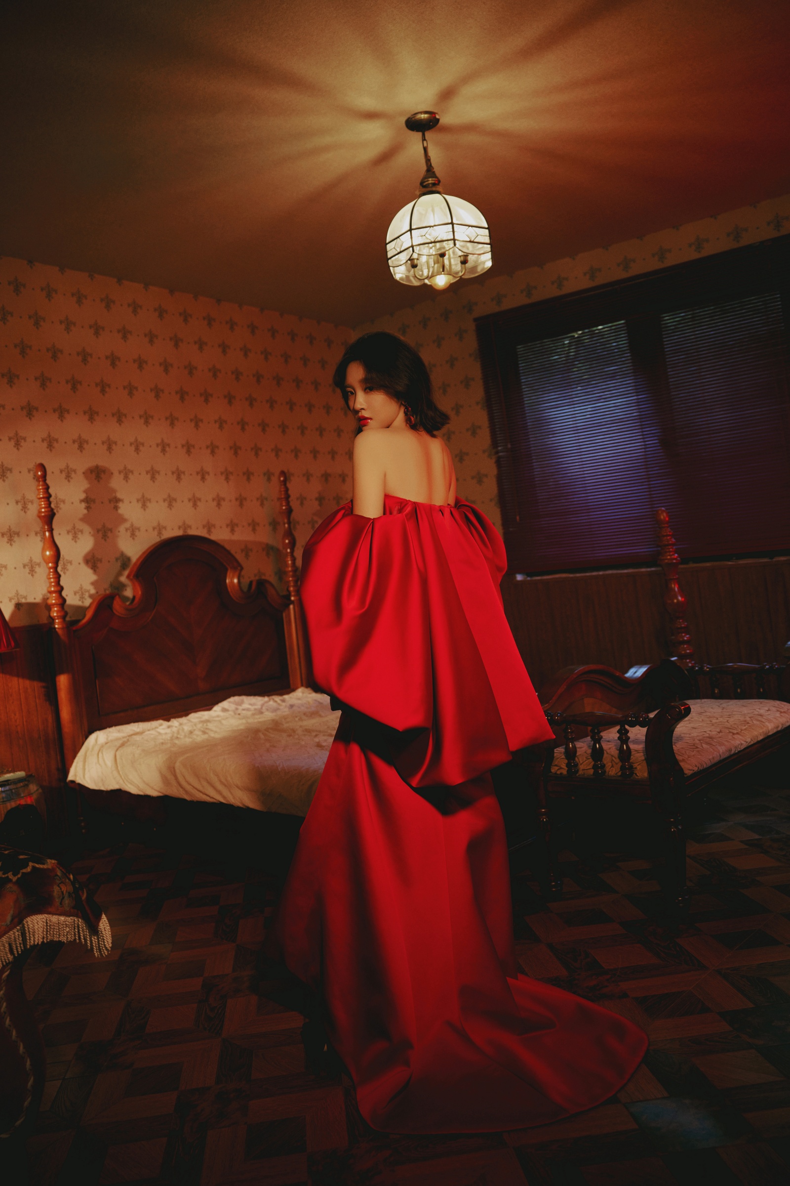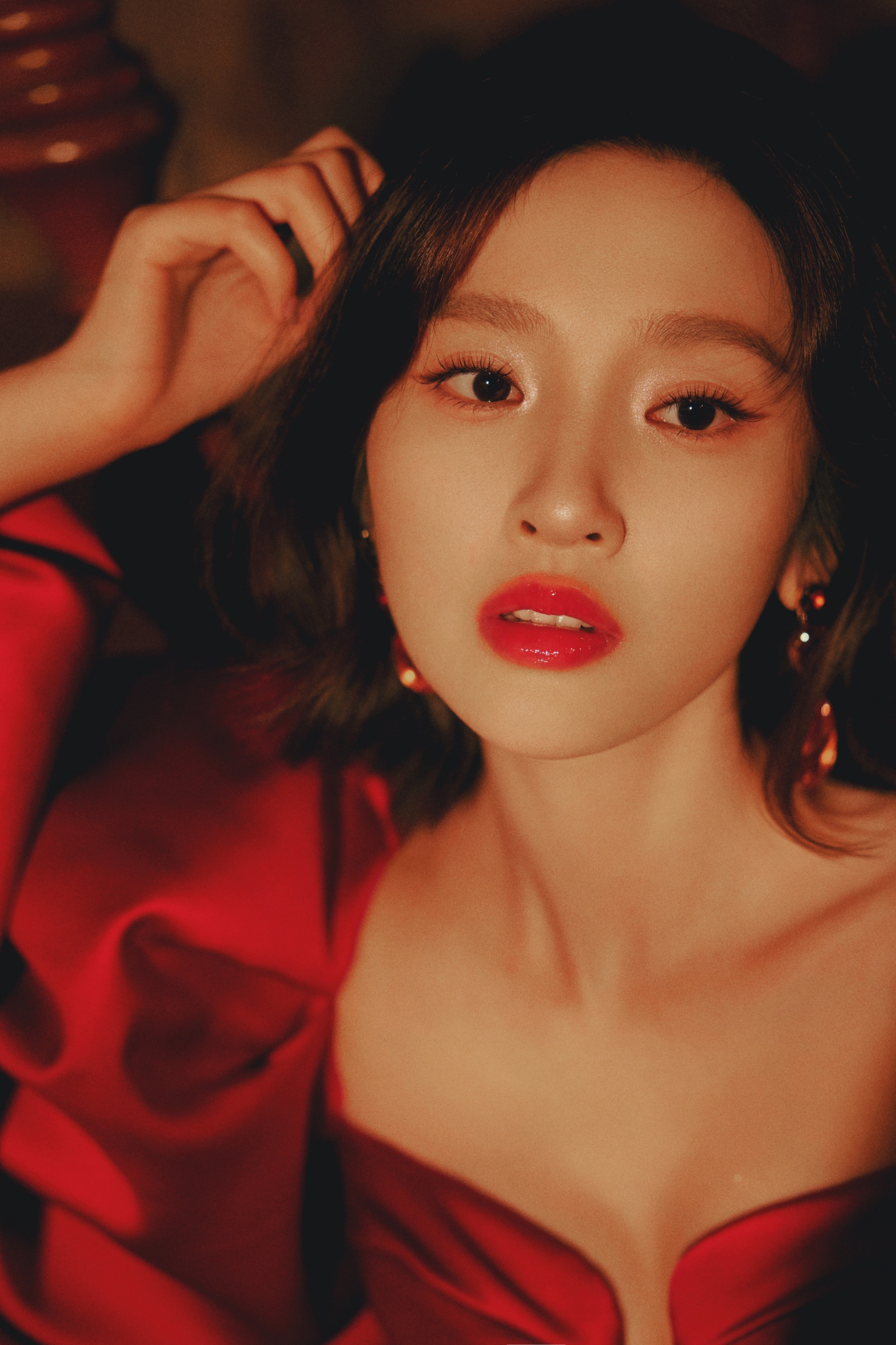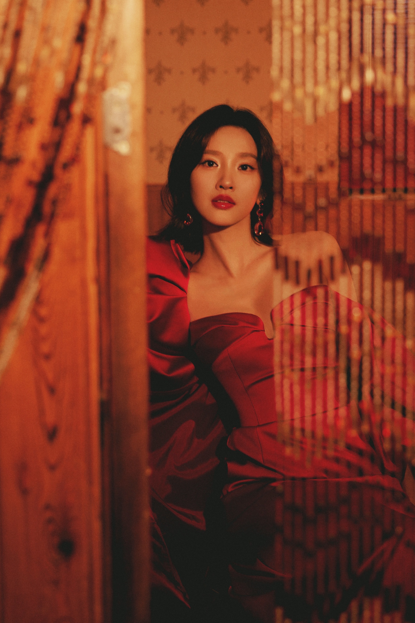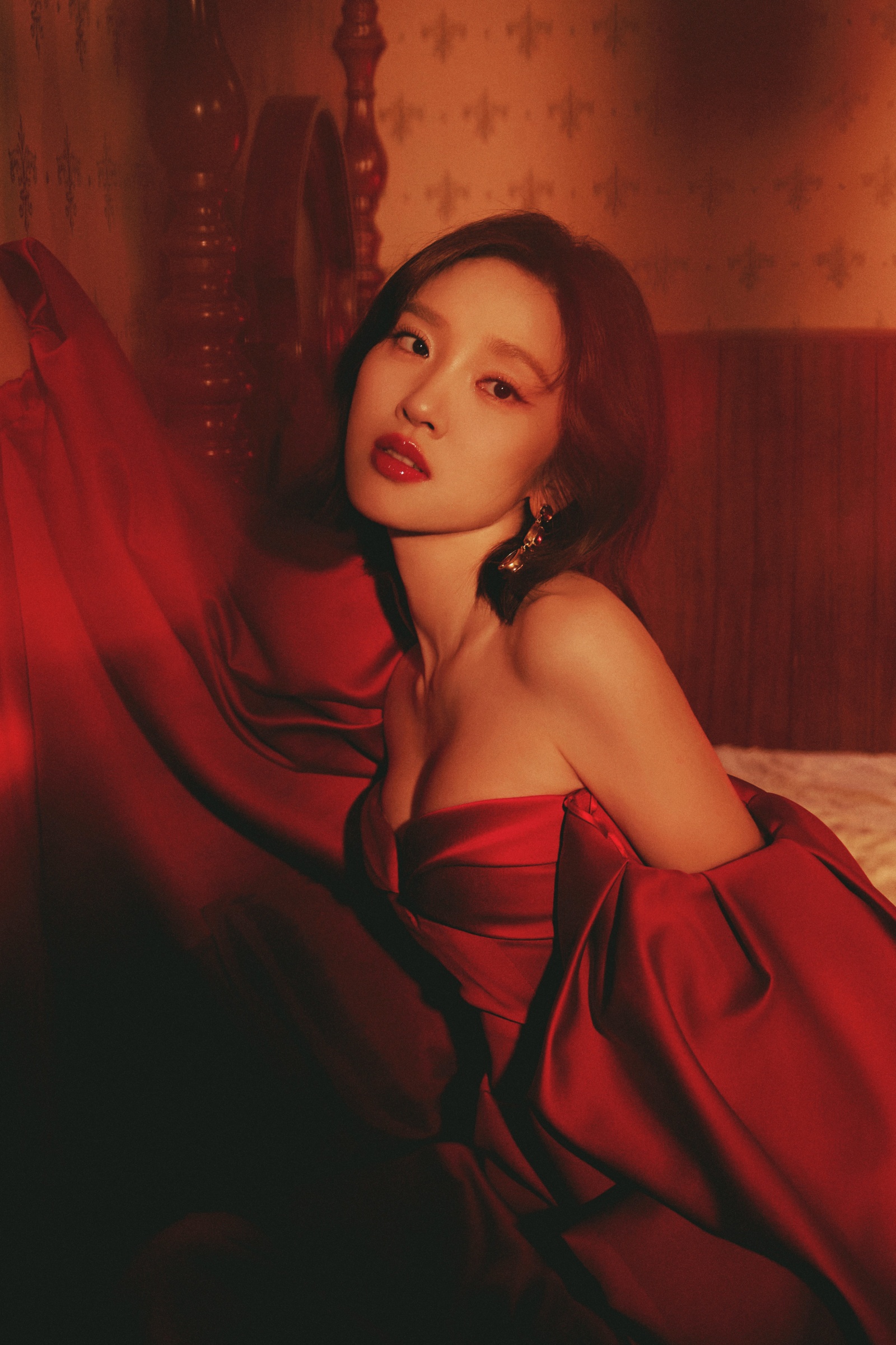 唐艺昕抹胸红裙,勾画光影流韵,让慵懒肆意蔓延