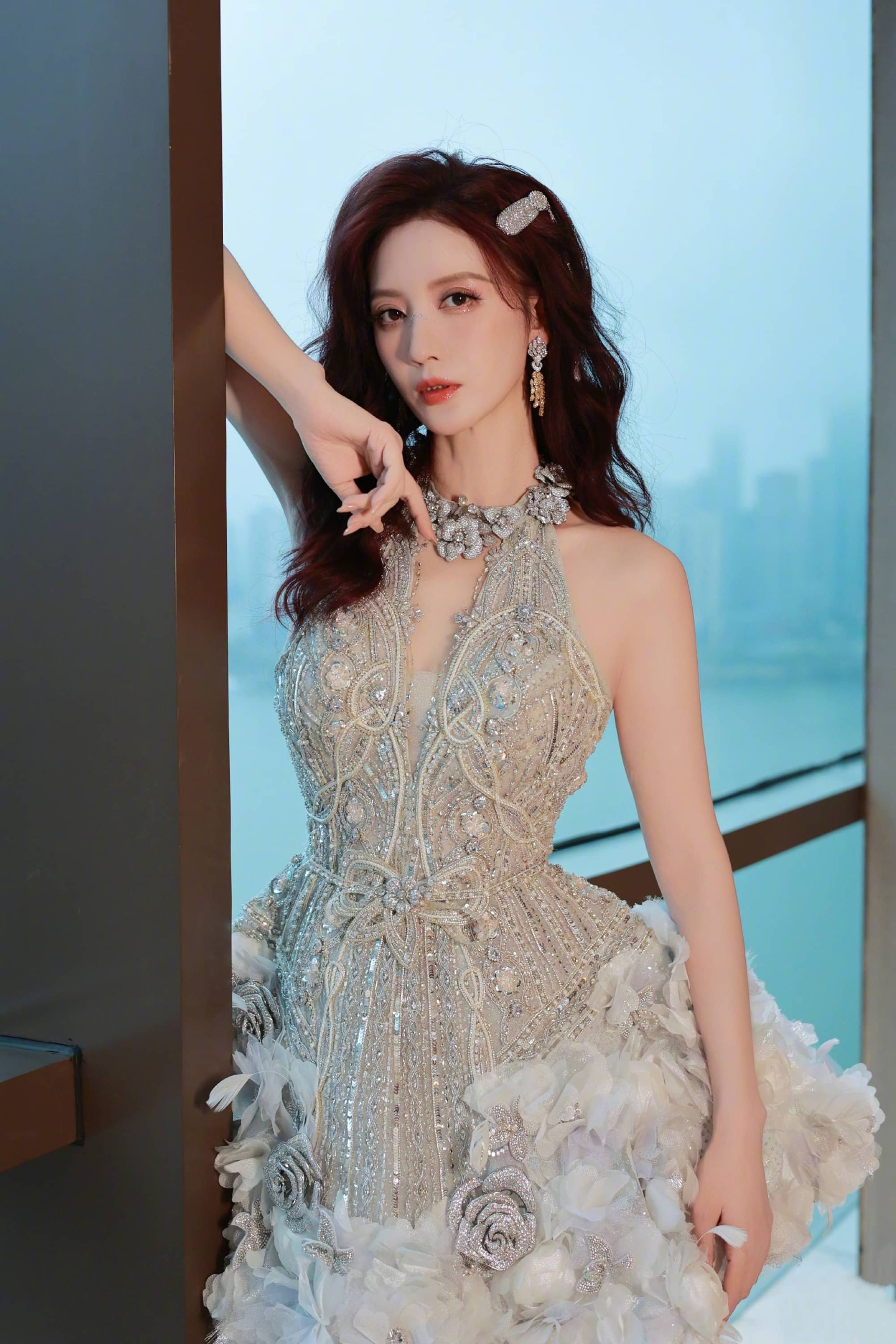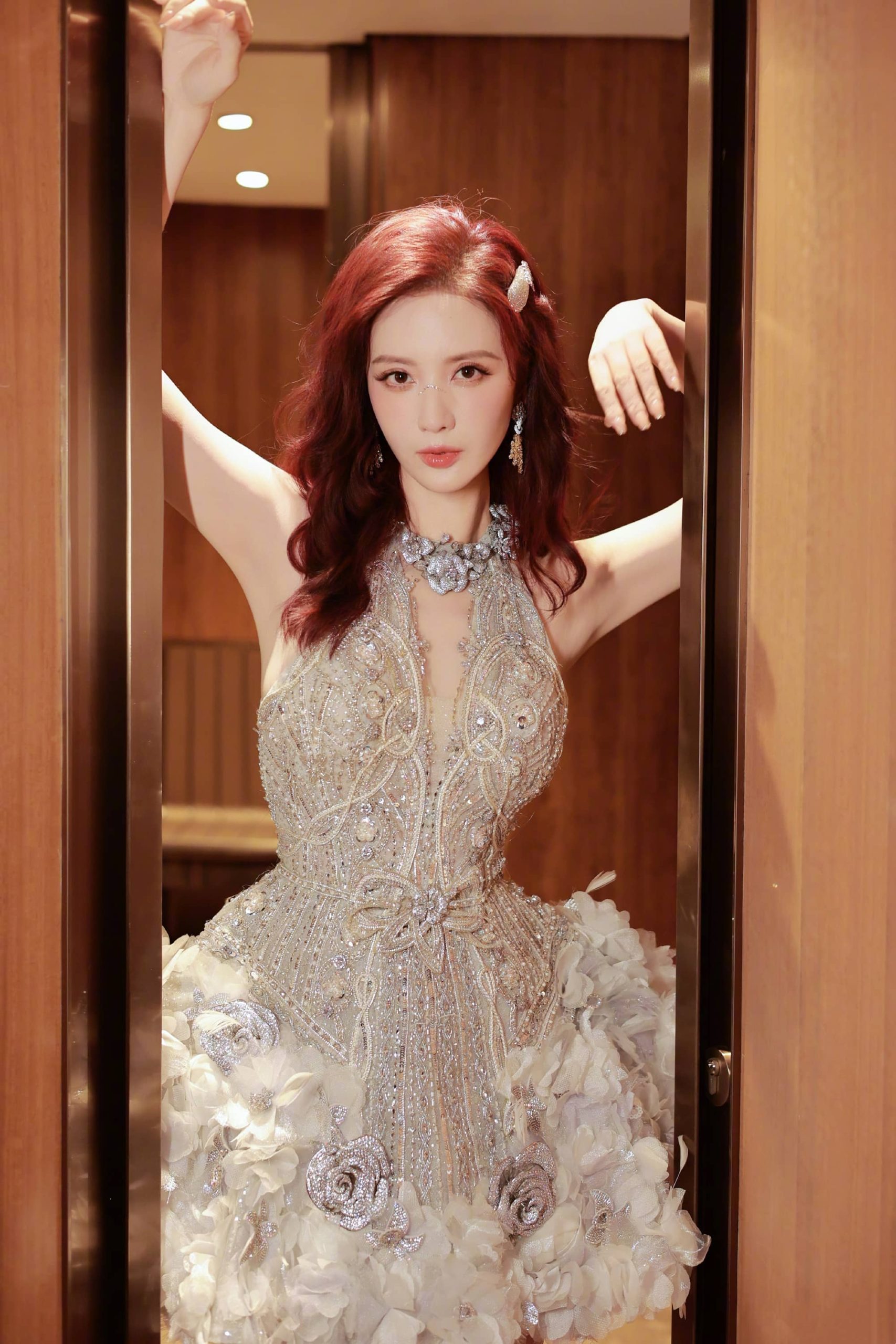 张萌一身优雅穿搭,蕾丝裙大长腿