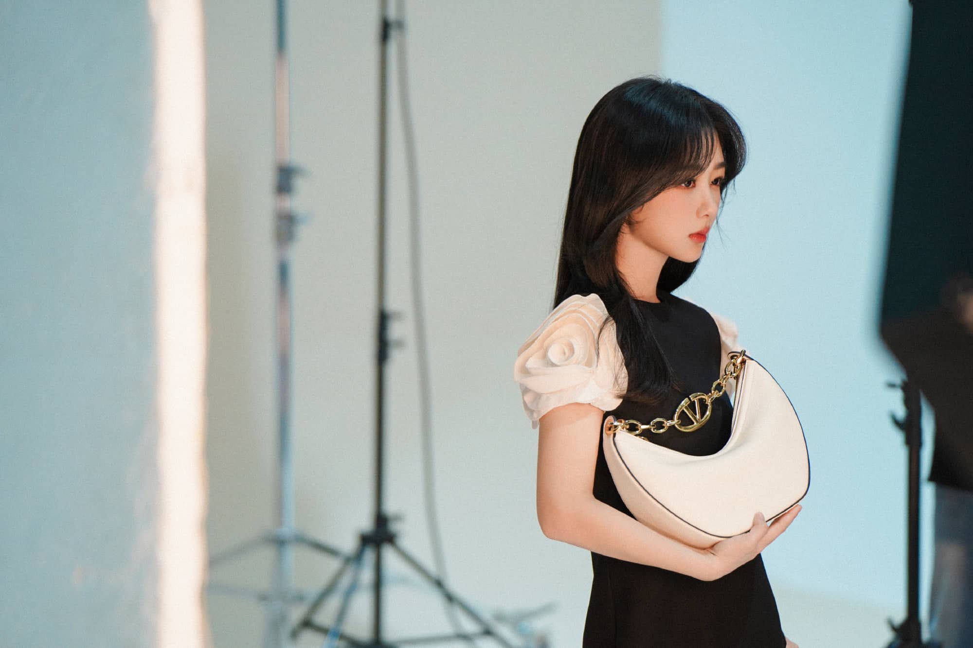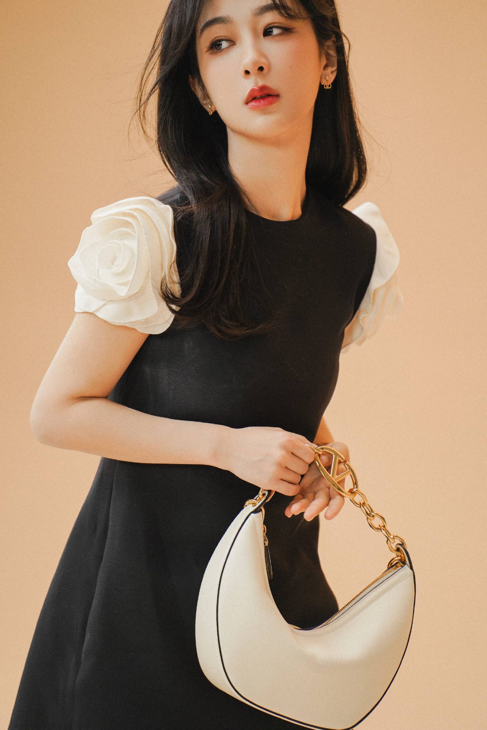 杨紫红唇黑裙子越来越美了