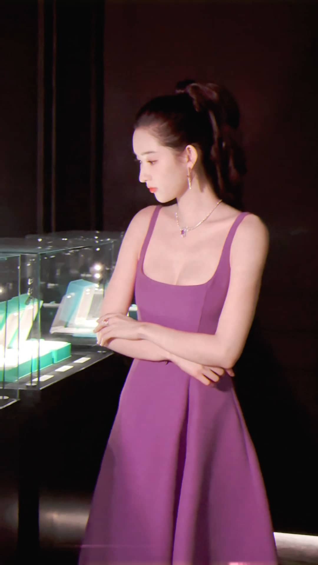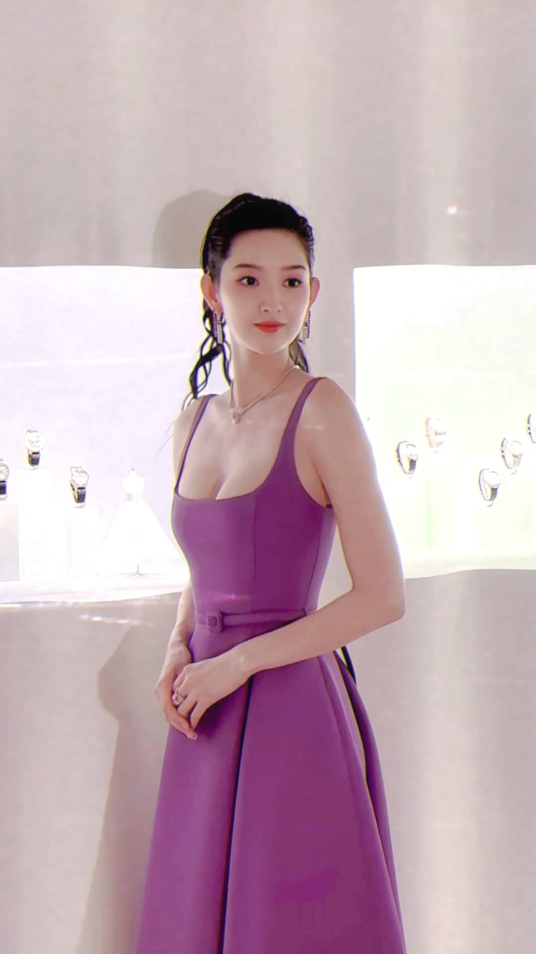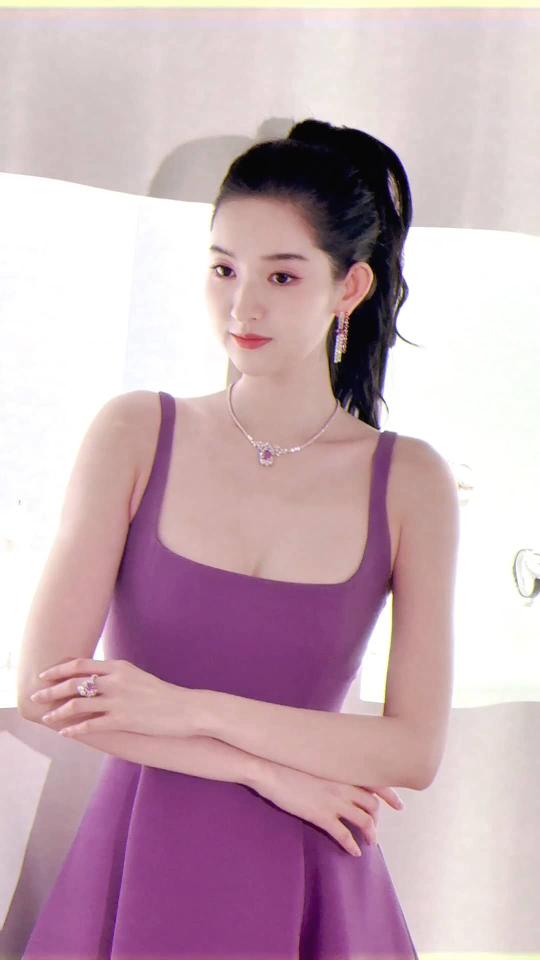 王玉雯紫色吊带定格温柔