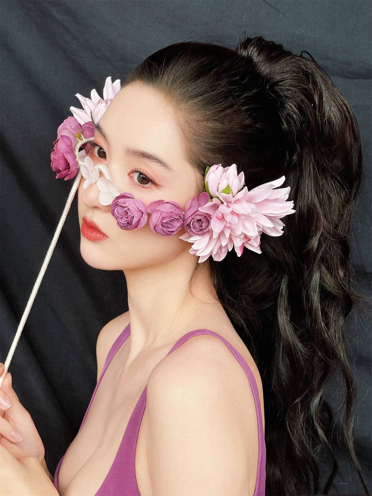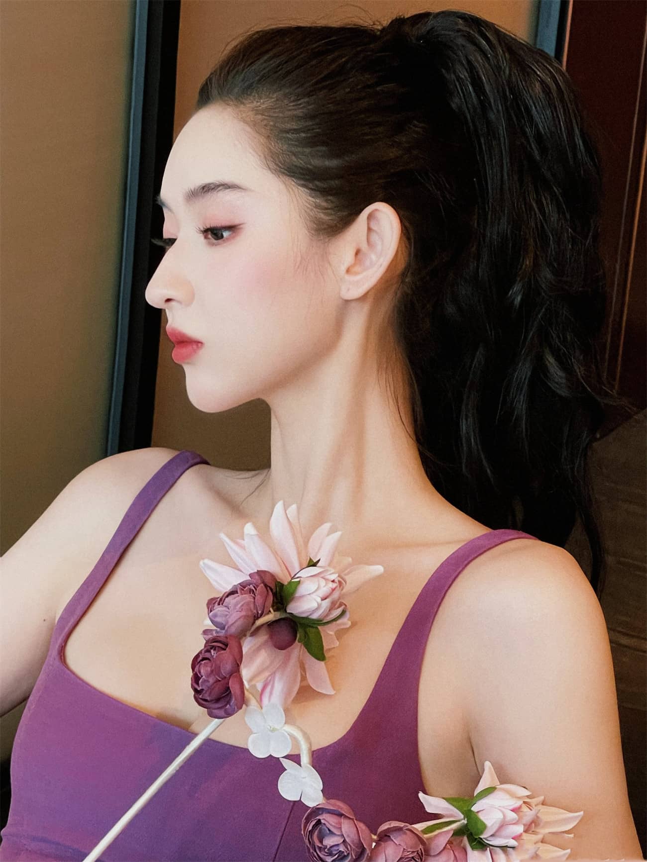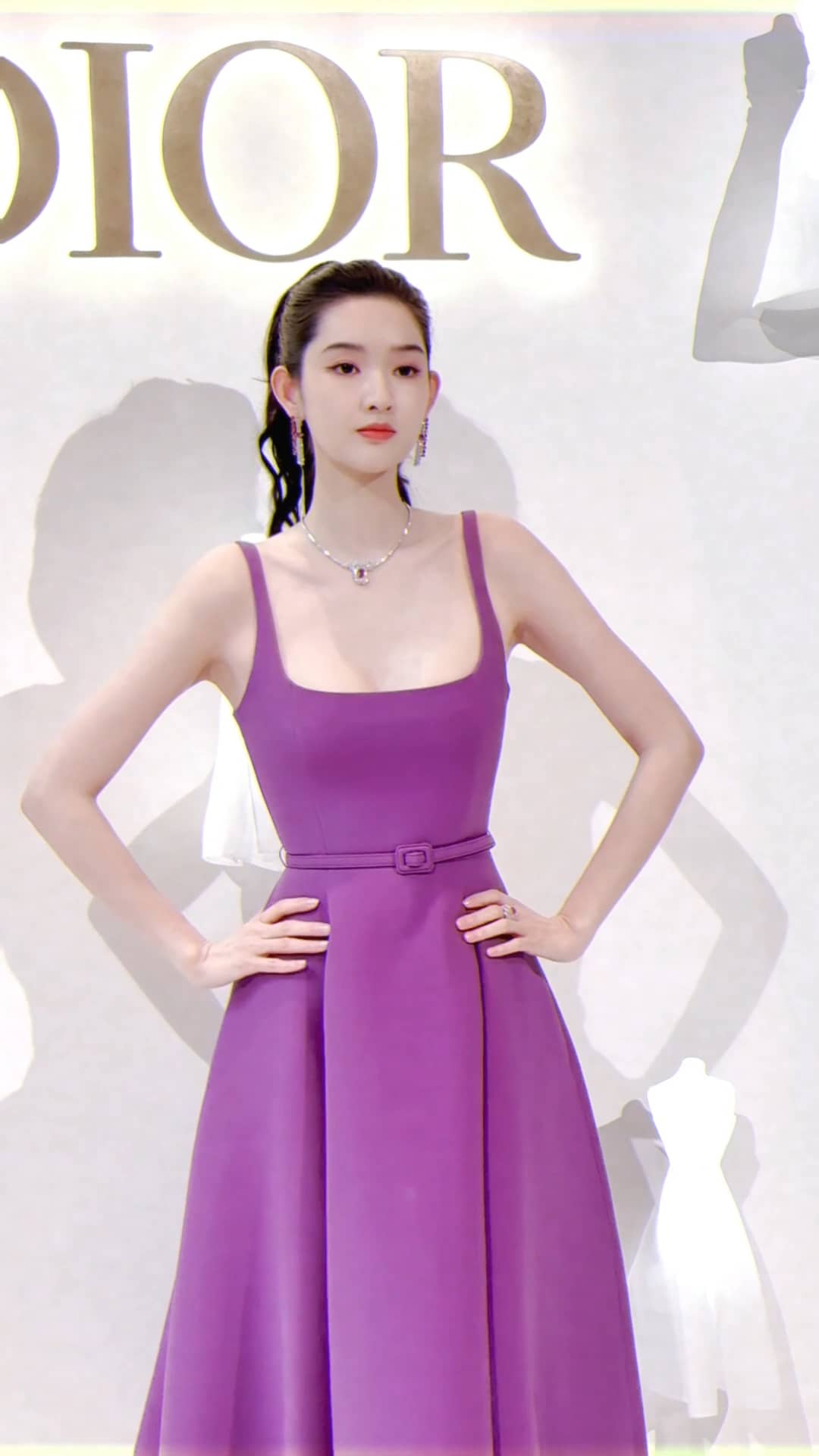 王玉雯紫色吊带定格温柔